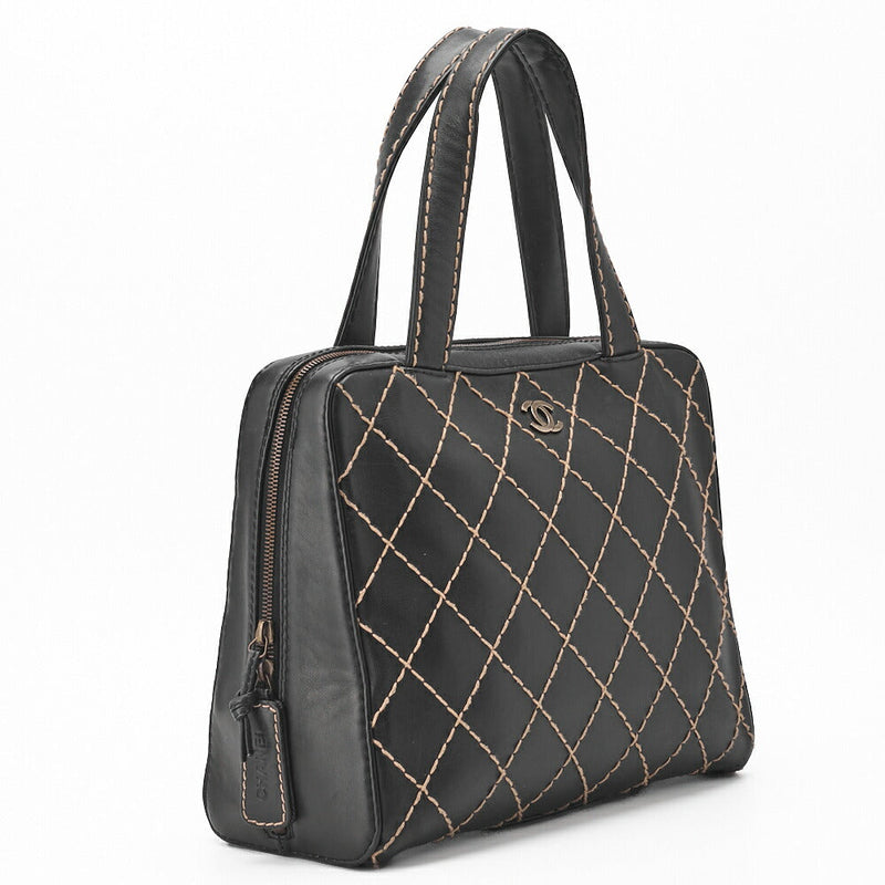 Sac fourre-tout d'occasion, Coco Mark Wild Stitch, cuir de veau, noir, finitions argentées, d'occasion
