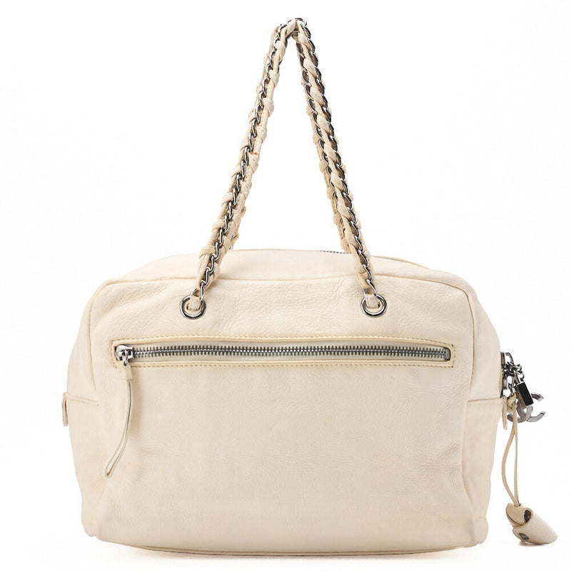 Sac fourre-tout Coco Mark d'occasion, cuir, blanc, finitions argentées, d'occasion