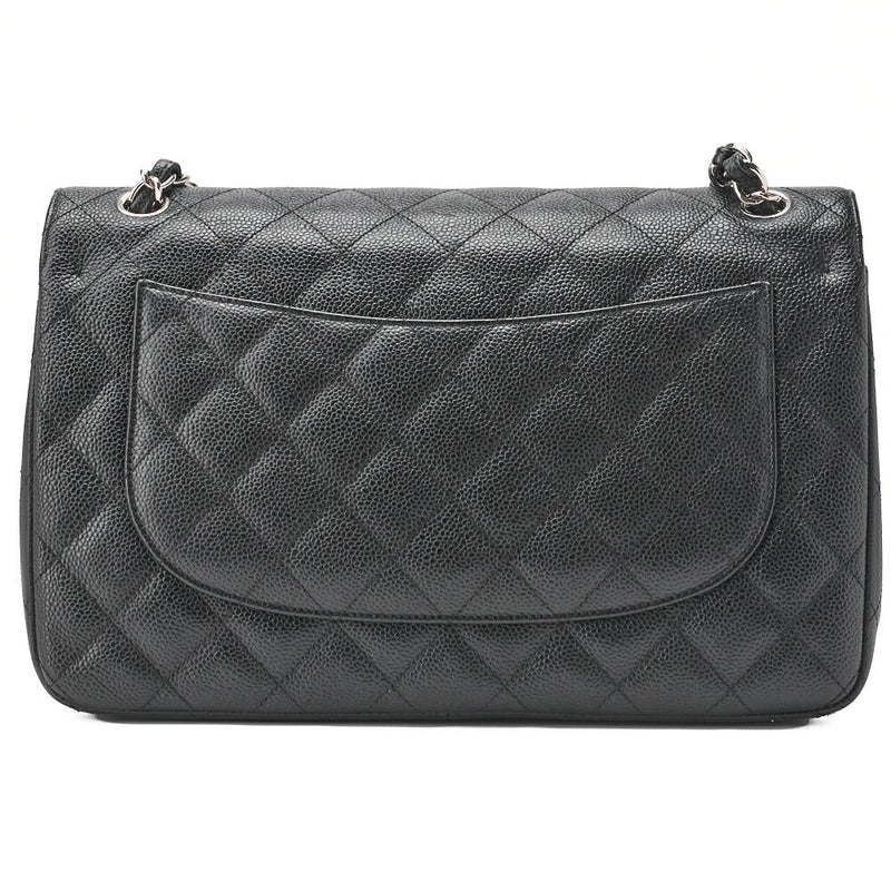 Sac bandoulière d'occasion, Deca Matelasse, double rabat, cuir caviar, noir, finitions argentées, d'occasion