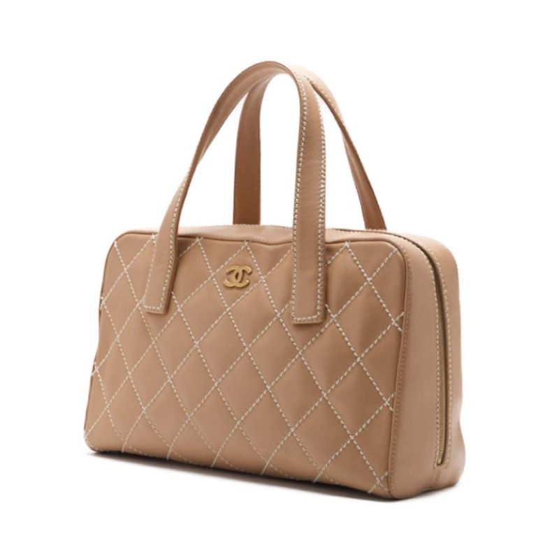 Sac fourre-tout d'occasion Coco Mark Wild Stitch en cuir de veau beige et métal doré. D'occasion
