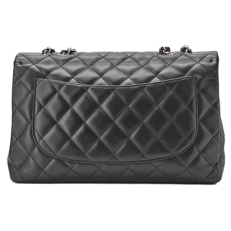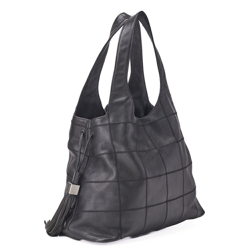 Sac bandoulière d'occasion, Deca Matelasse, chaîne à 30 tours, cuir d'agneau, noir, accessoires argentés, d'occasion