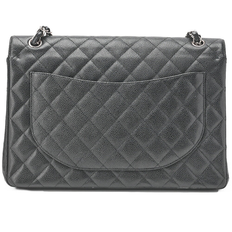 Sac bandoulière d'occasion, Deca Matelasse, double rabat, cuir caviar, noir, finitions argentées, d'occasion