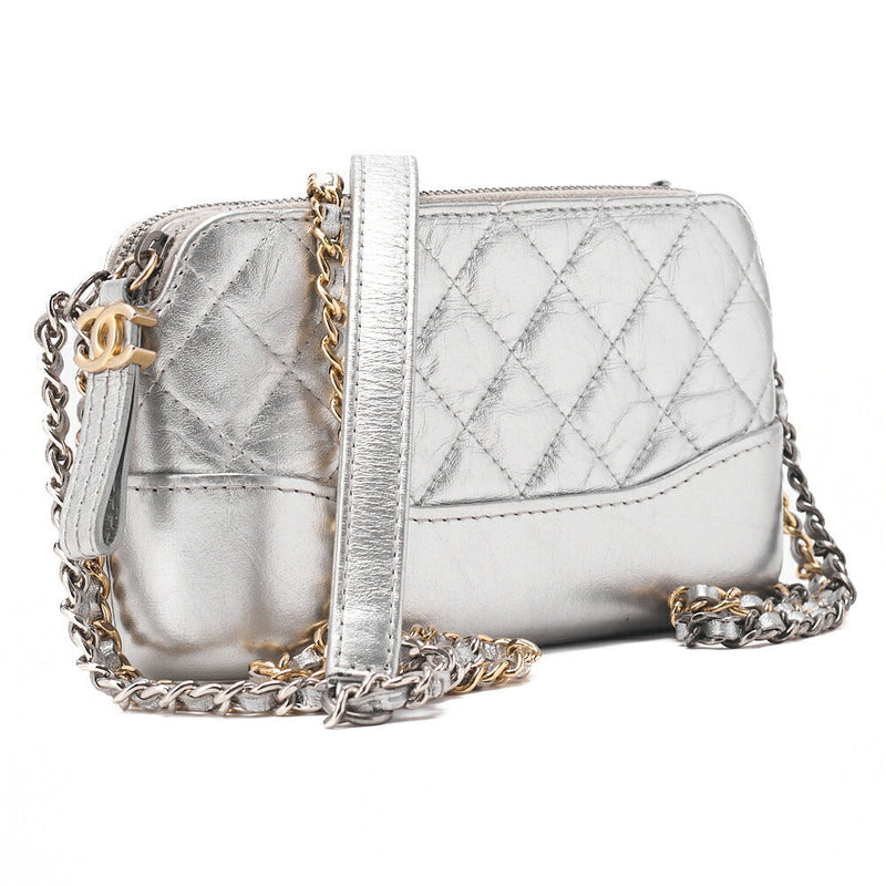 Sac à bandoulière chaîne matelassé vintage en cuir de veau, mini, matériel argenté, d'occasion