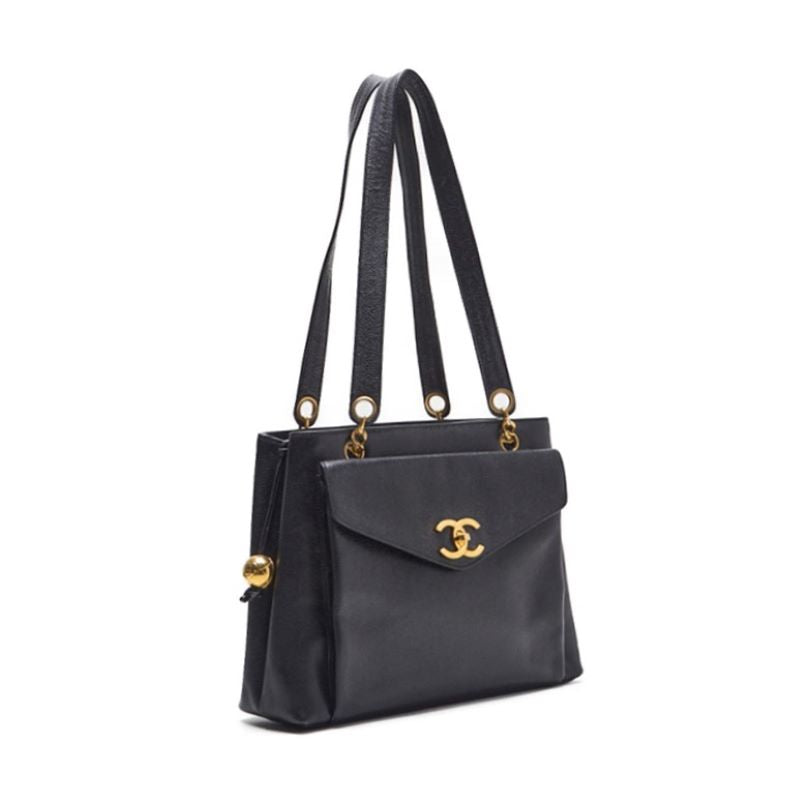 Sac fourre-tout d'occasion Matelasse GST Double chaîne en cuir caviar noir et matériel doré. D'occasion