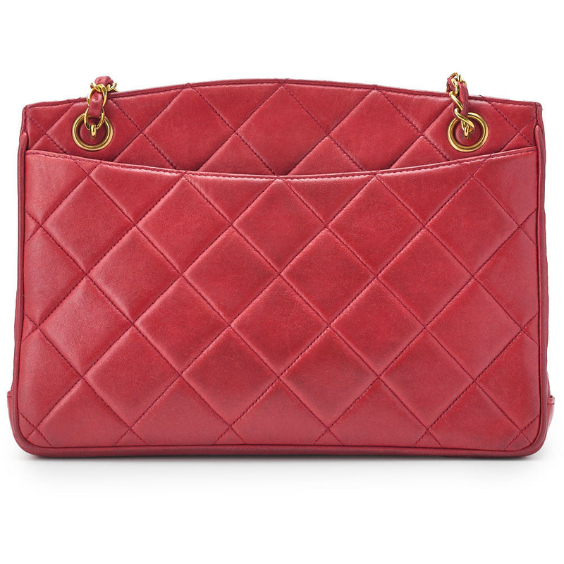 Sac bandoulière d'occasion Matelasse Deca Coco, fermoir tournant, cuir d'agneau rouge, quincaillerie dorée. D'occasion