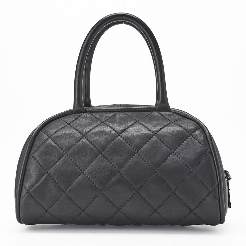 Sac Mini Boston d'occasion en cuir de veau matelassé noir et métal argenté.