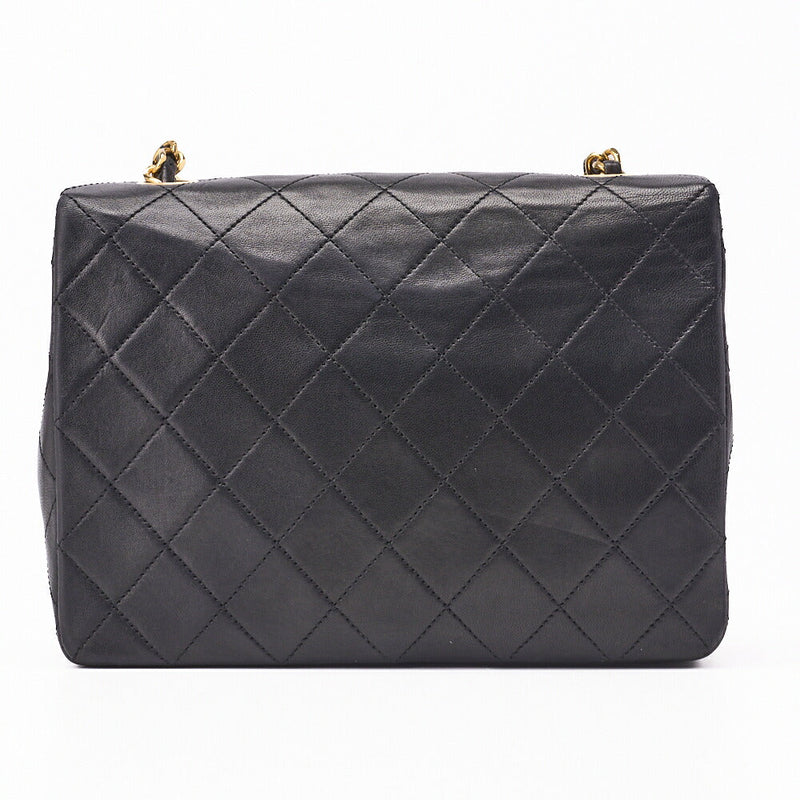 Sac bandoulière d'occasion Mini matelassé en cuir d'agneau noir et métal doré