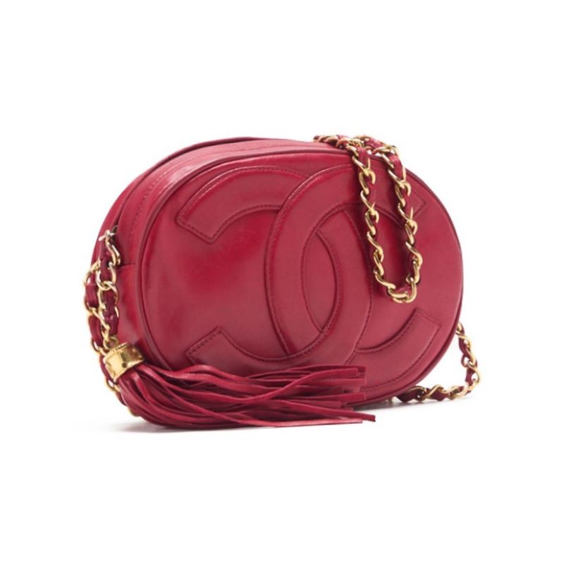 Sac bandoulière d'occasion, Coco Mark Fringe, cuir d'agneau, rouge, finitions dorées, d'occasion
