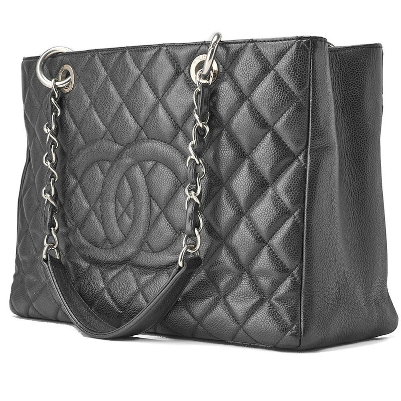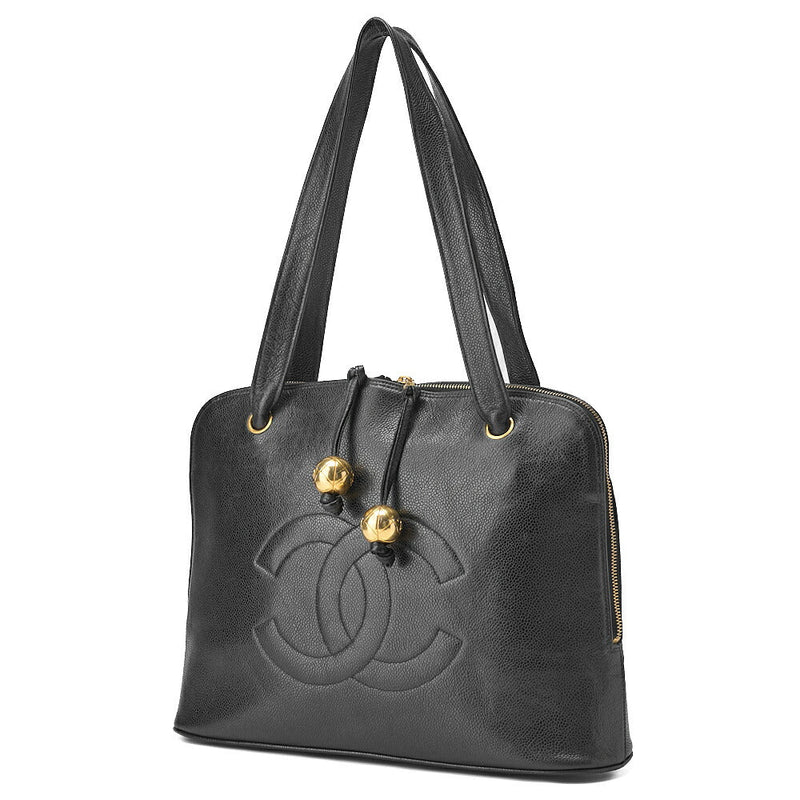 Sac fourre-tout à bandoulière Coco Mark d'occasion, cuir caviar, noir, finitions dorées.