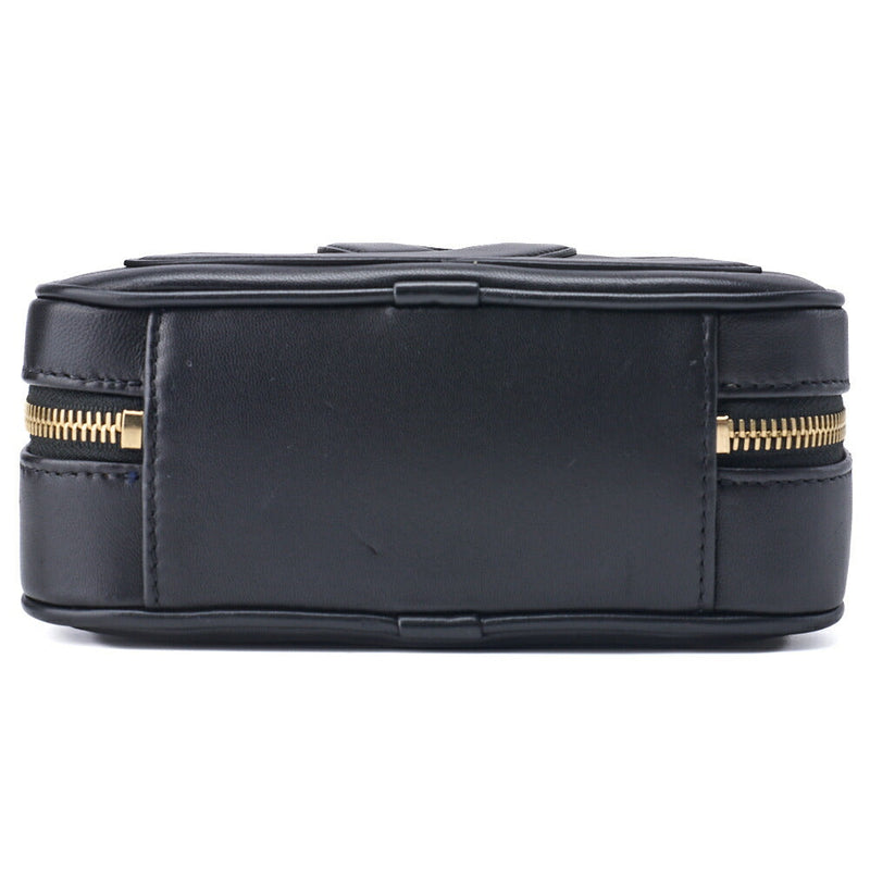 Sac bandoulière d'occasion, matelassé, fermeture éclair ronde, cuir d'agneau, noir, finitions dorées, d'occasion