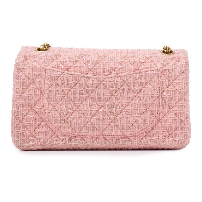 Sac bandoulière d'occasion, matelassé, double rabat, jersey, rose, finitions dorées, d'occasion
