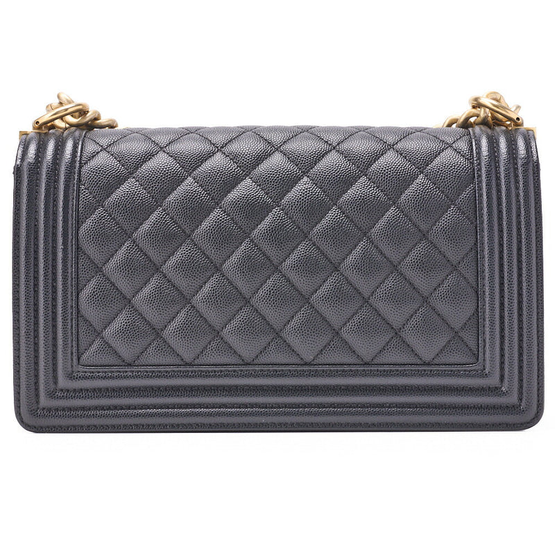 Sac à bandoulière d'occasion, sac fourre-tout matelassé en cuir caviar noir, matériel doré, d'occasion