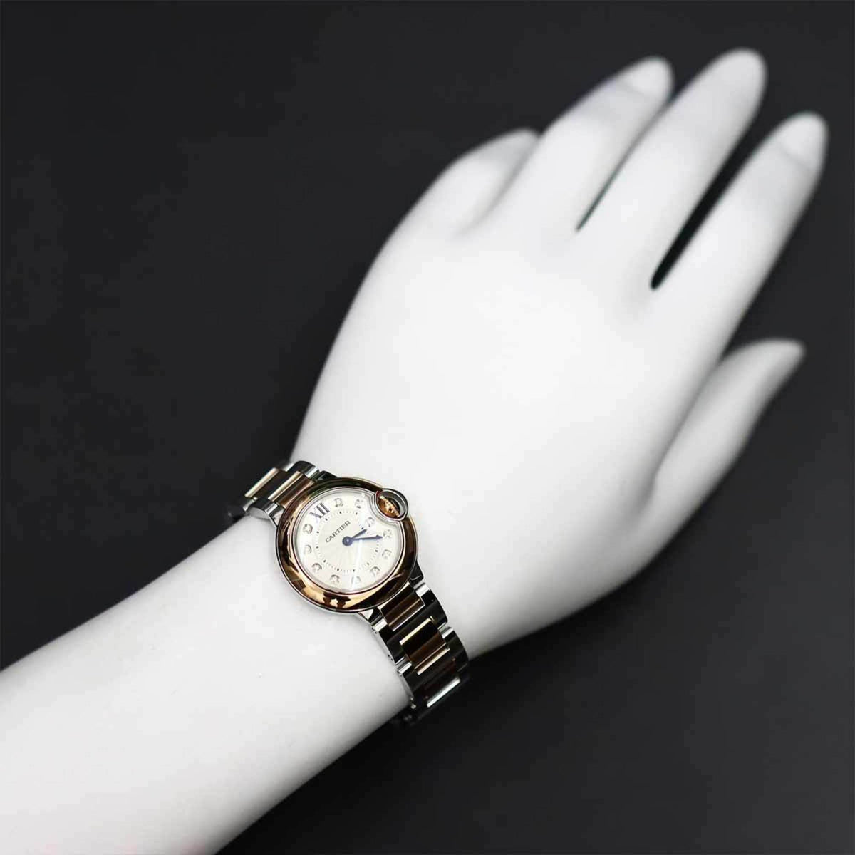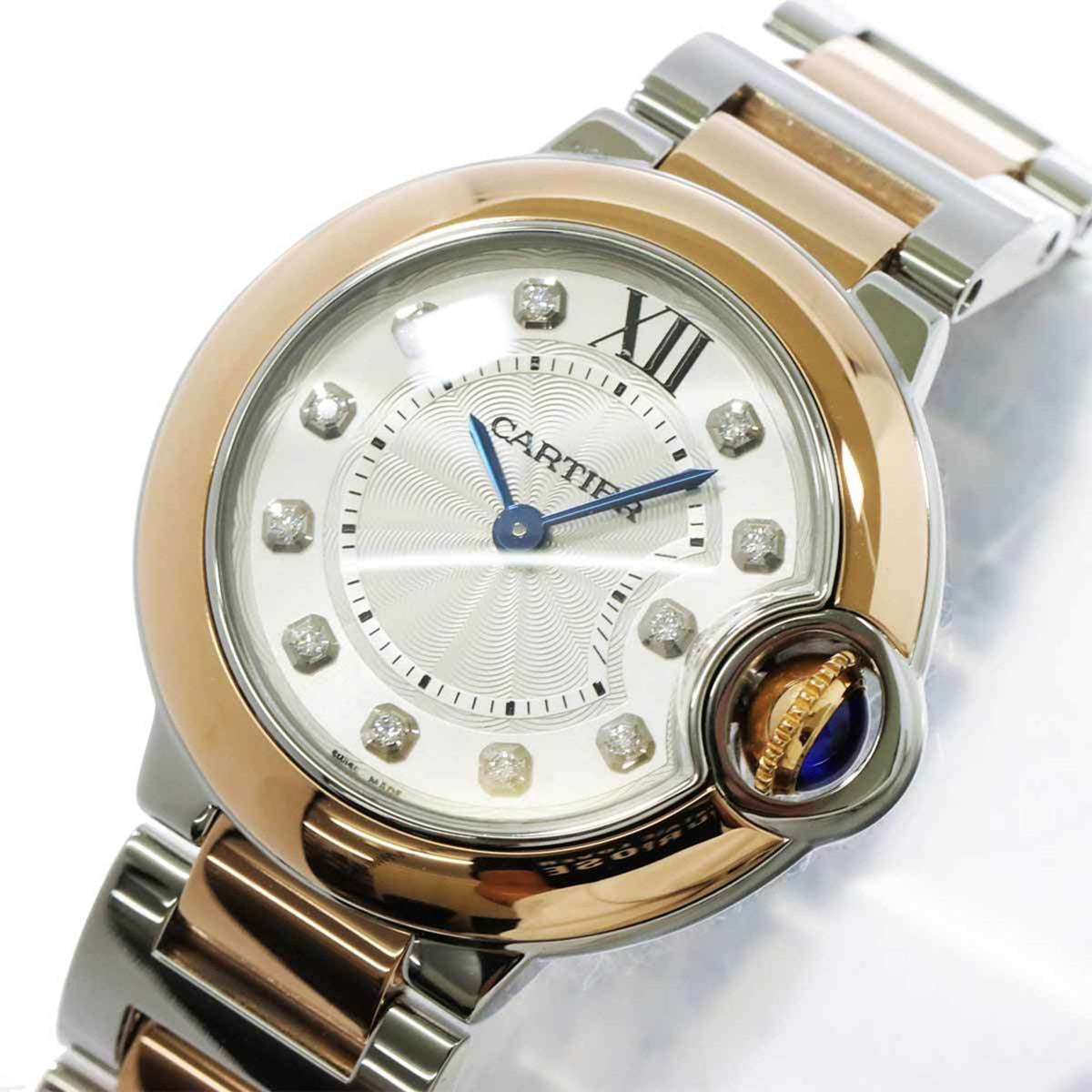 Pre-Owned Cartier Ballon Bleu 28mm Two-tone Women's Watch (W3BB0005) with 11 Diamonds, Silver, 18K Pink Gold, and Quartz Movement