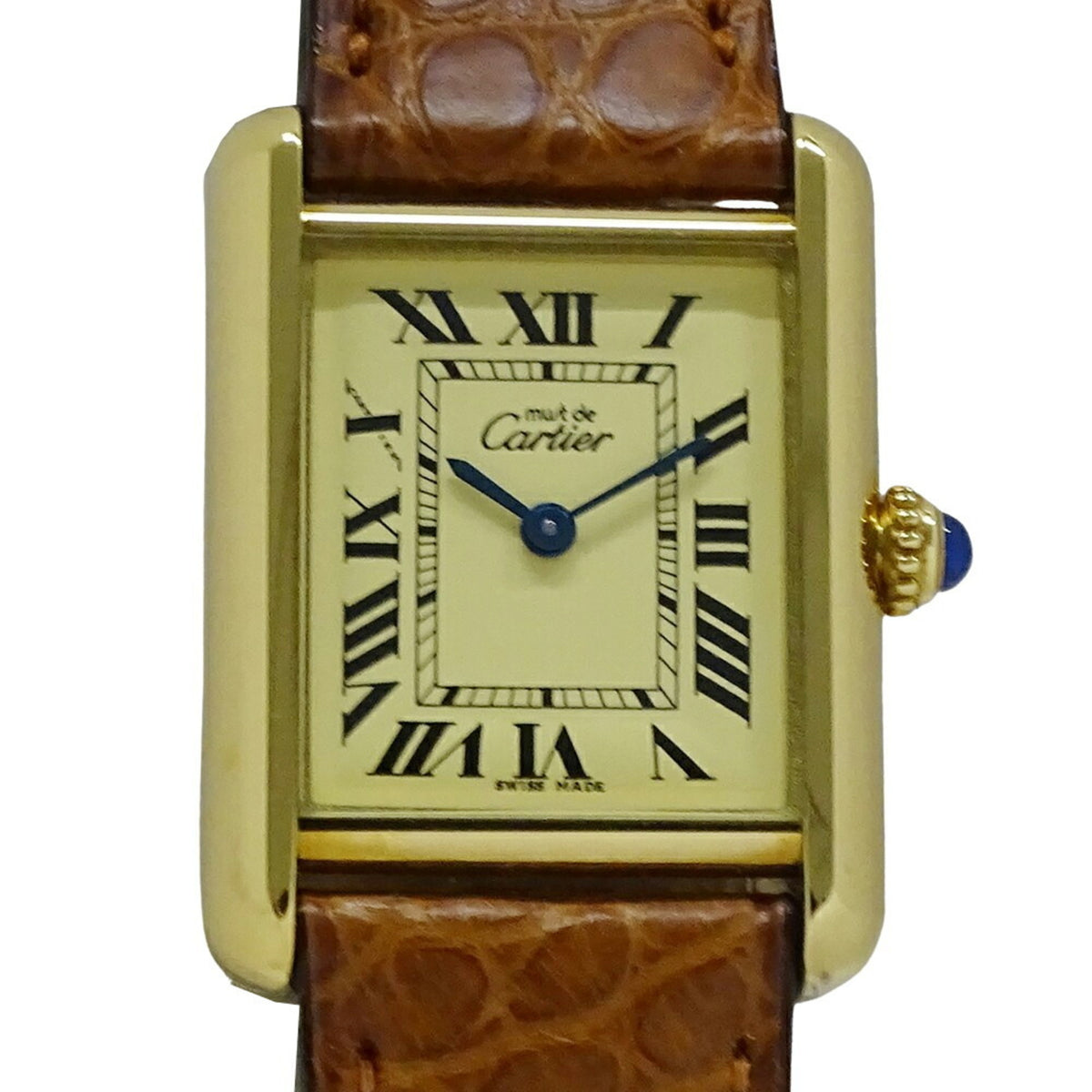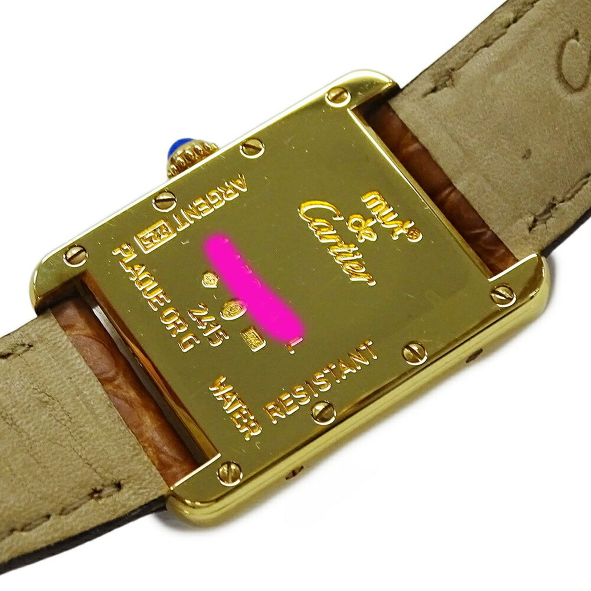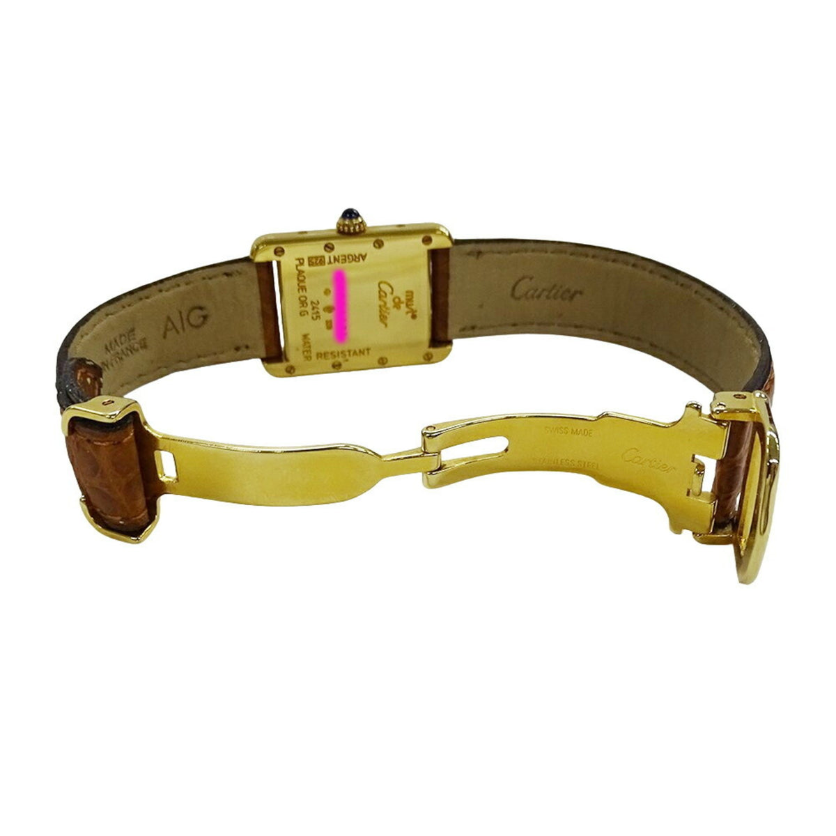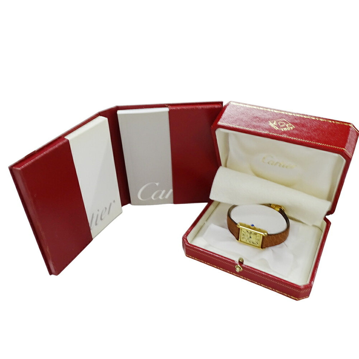 Montre Cartier Must Tank SM d'occasion pour femme, quartz, cuir vermeil 925, W1017354, carrée