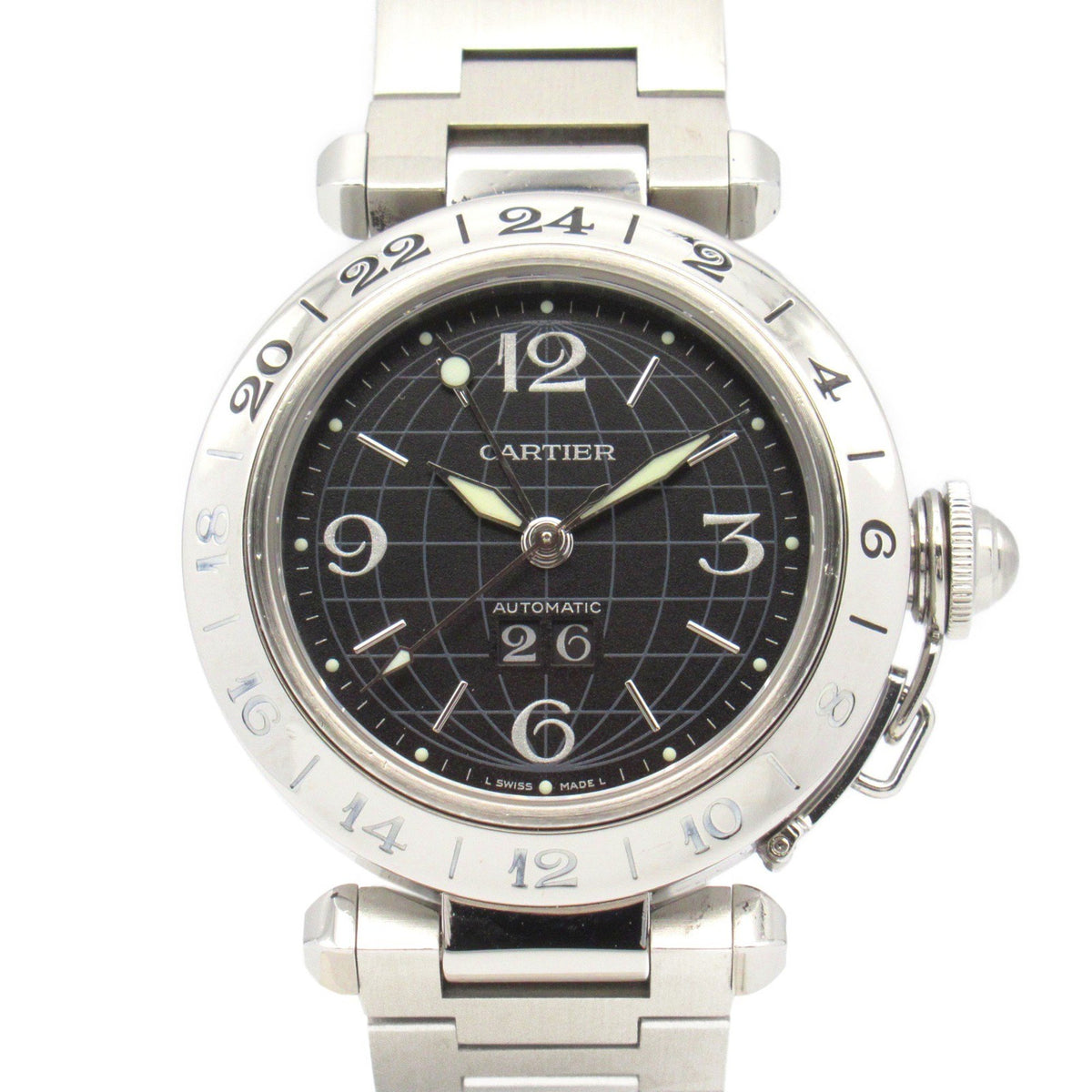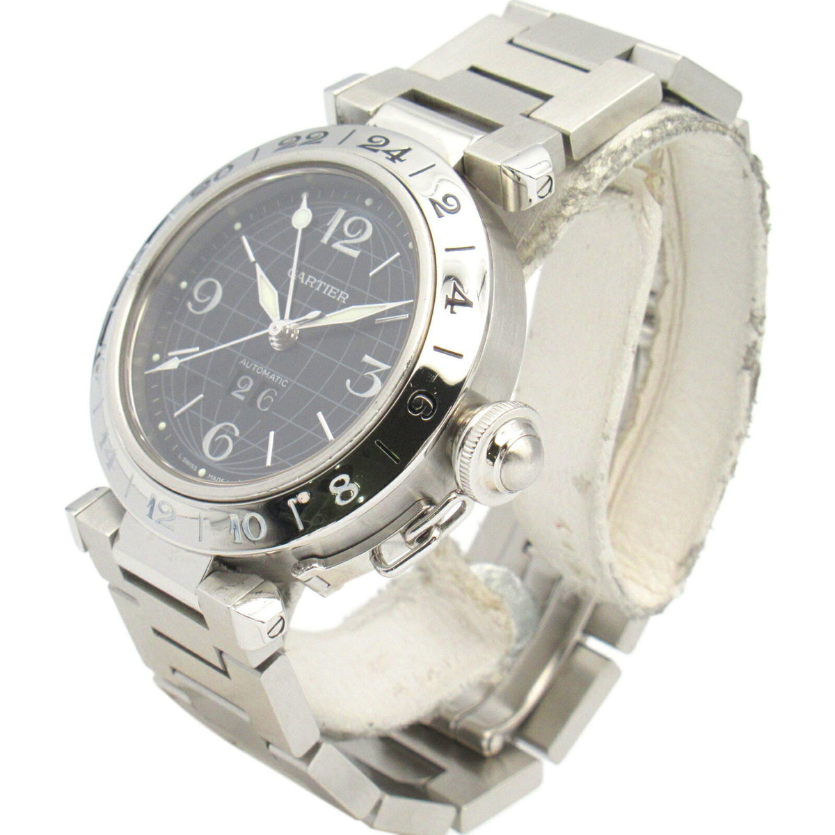 Montre Cartier Pasha C Meridian GMT d'occasion pour garçon, en acier inoxydable, noire, W31049M7