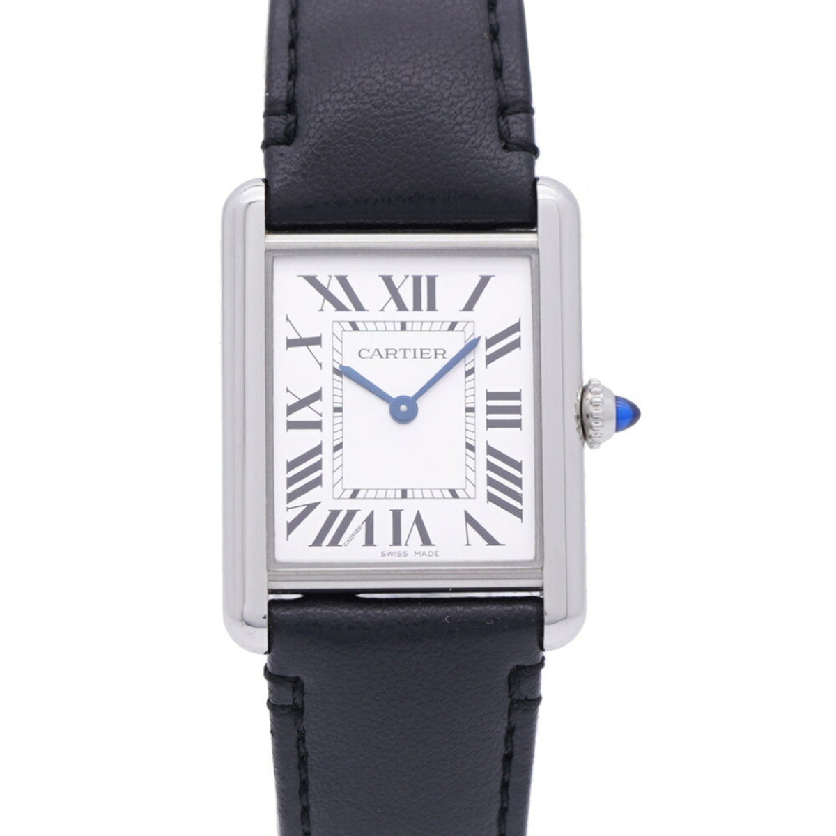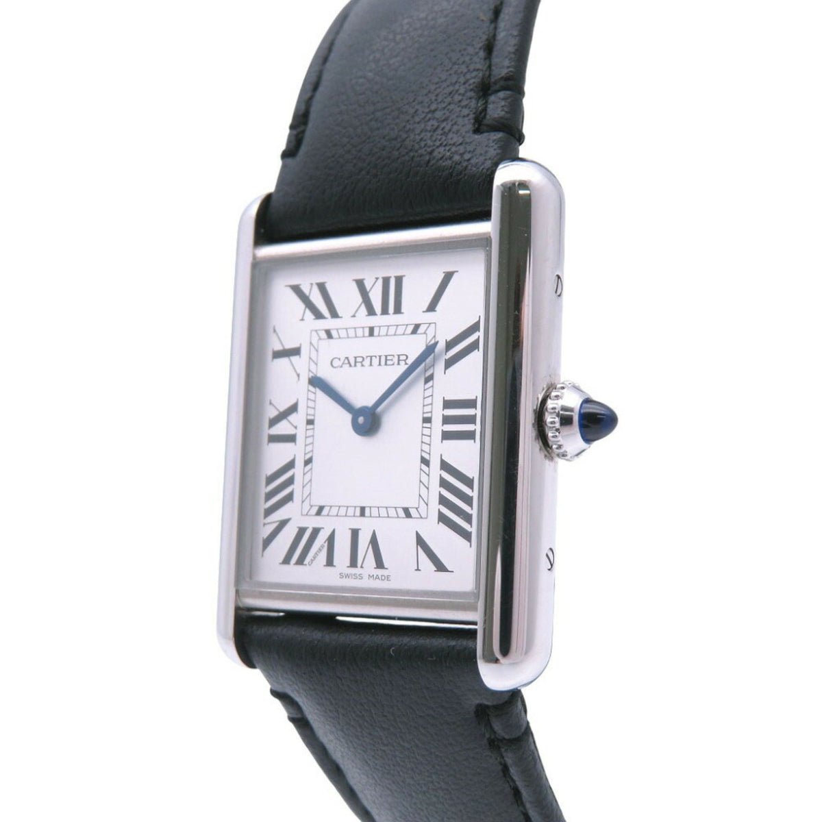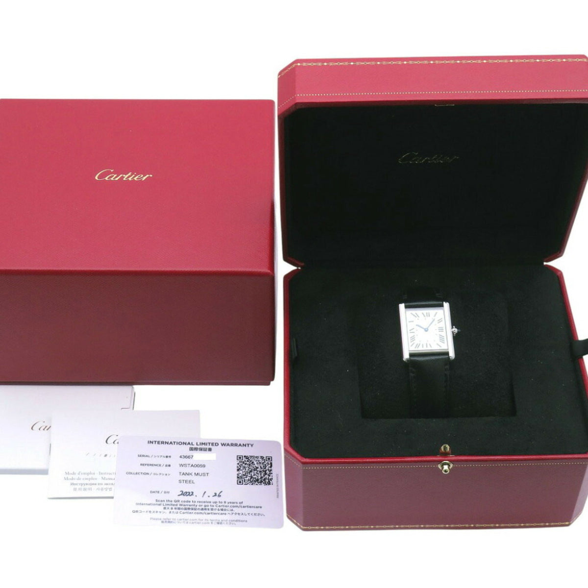 Montre Cartier Tank Must LM WSTA0059 à quartz solaire d'occasion, acier inoxydable/cuir, cadran argenté 0038CARTIER Homme