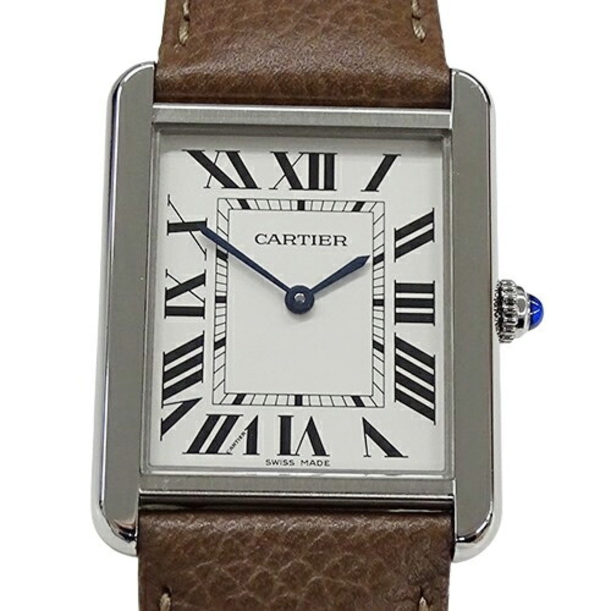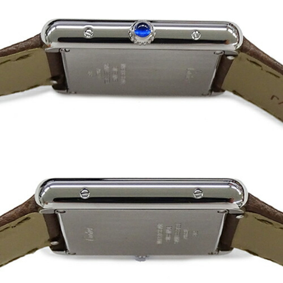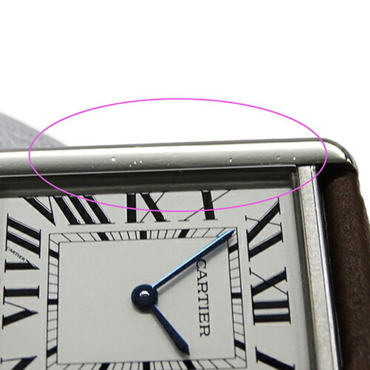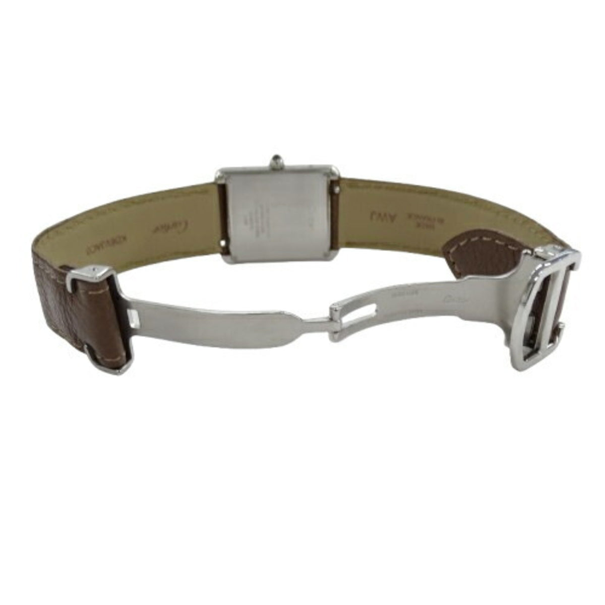 Montre homme Cartier Tank Solo LM d'occasion, quartz, acier inoxydable, cuir, WSTA0028, argent, marron, carrée, polie
