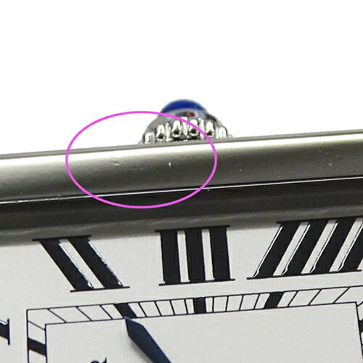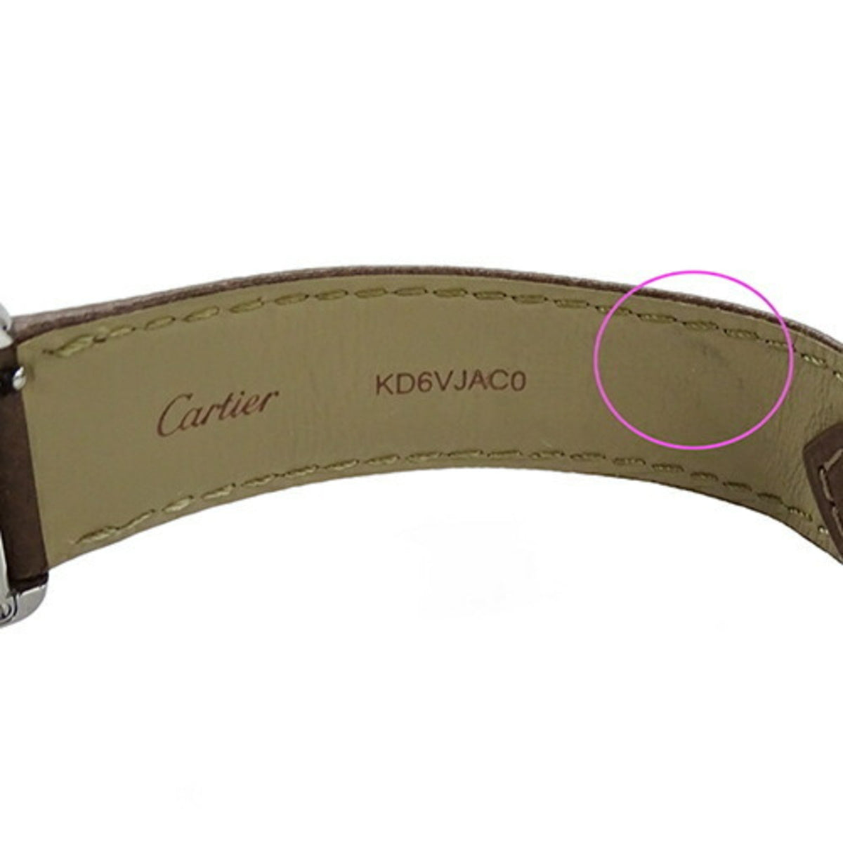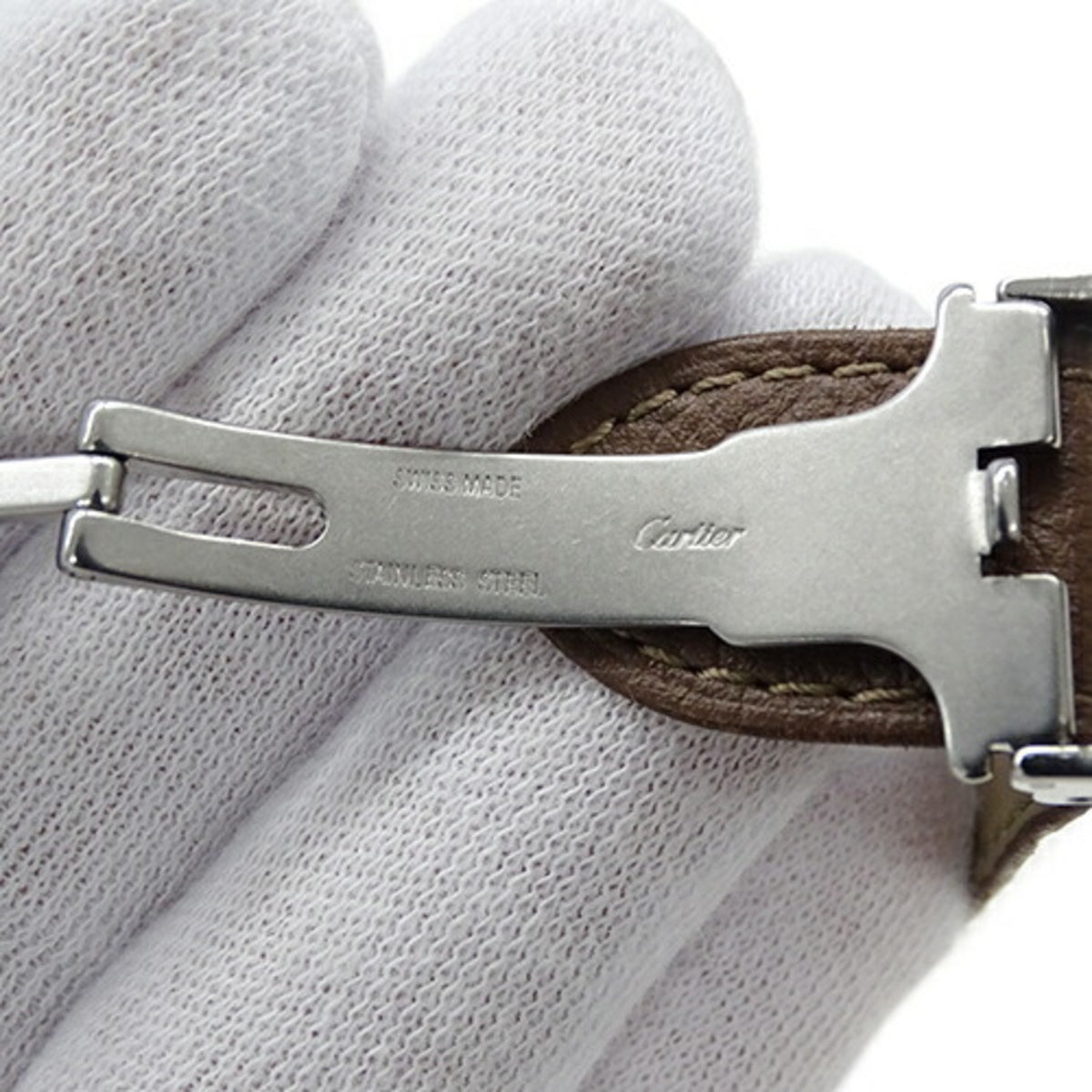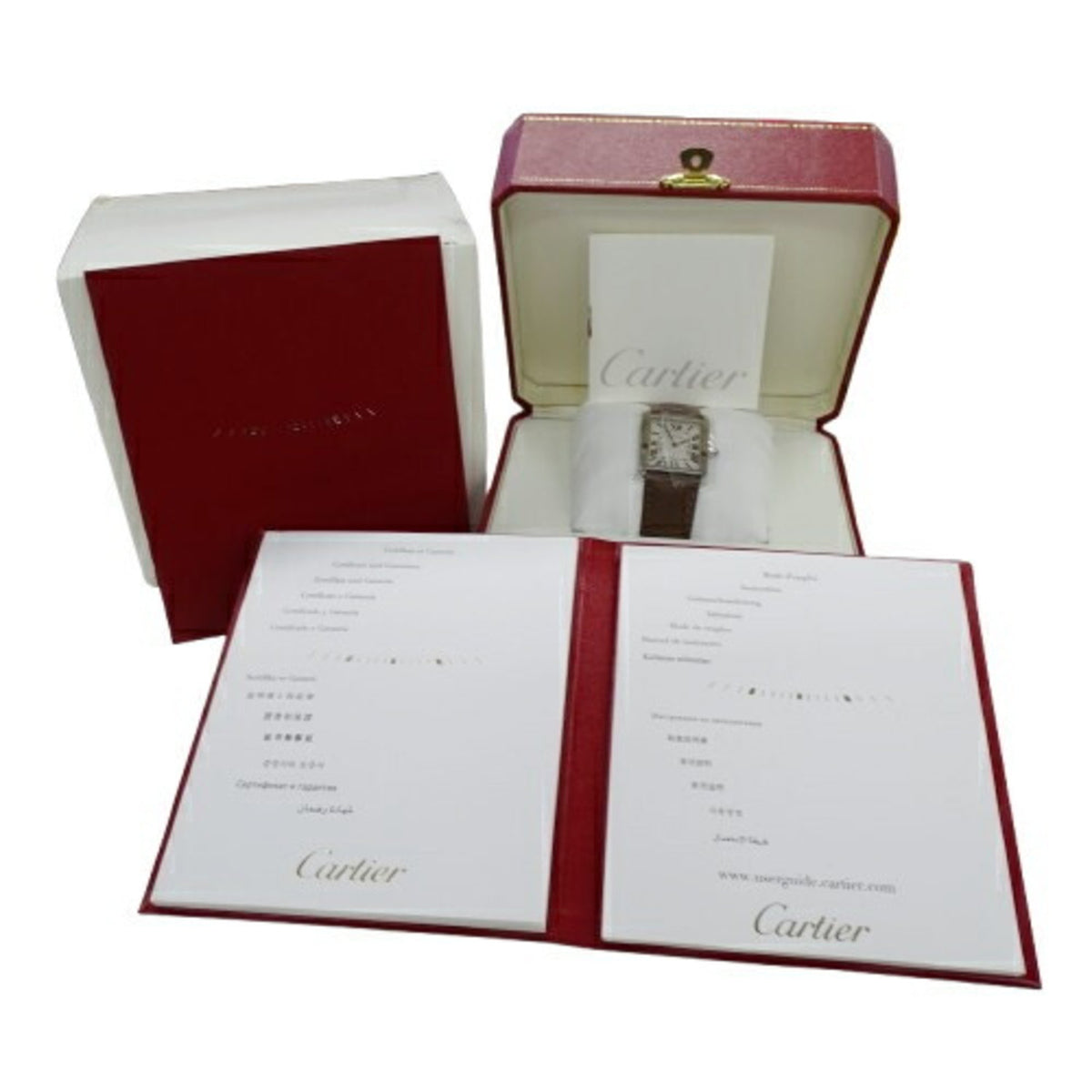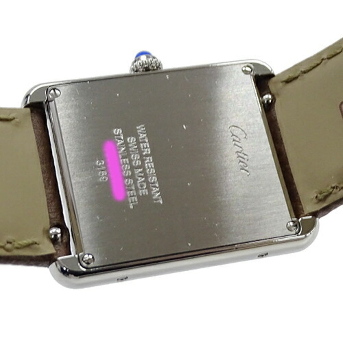 Montre homme Cartier Tank Solo LM d'occasion, quartz, acier inoxydable, cuir, WSTA0028, argent, marron, carrée, polie