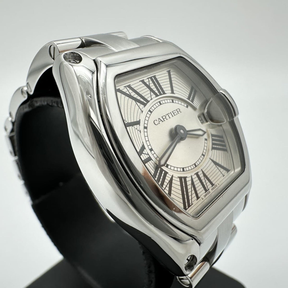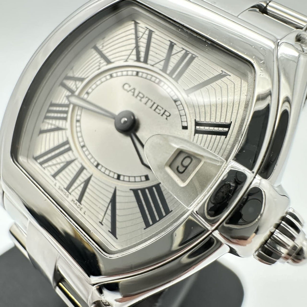 Pre-Owned Polished Cartier Roadster SM W62016V3 Watch, Date, Quartz, Stainless Steel, Silver, for Men and Women
