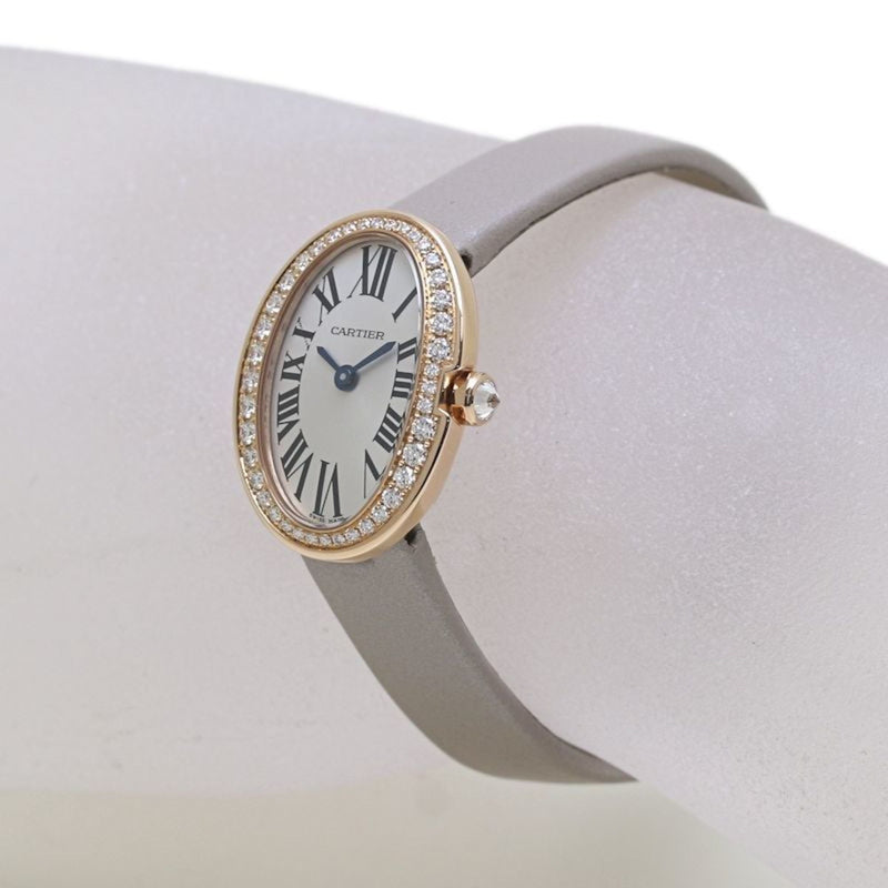 Pre-Owned CARTIER Cartier Mini Baignoire with Diamond Bezel WB520028 Women's Watch in 18K White Gold and Leather Finish 40168