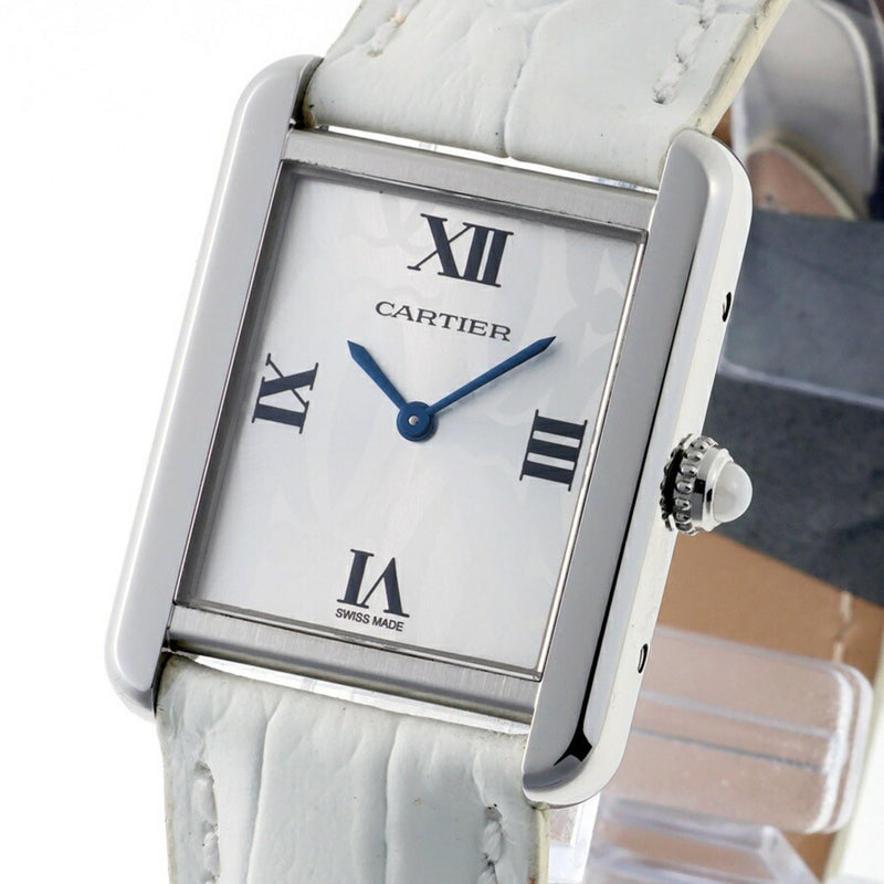 Montre-bracelet à quartz Cartier Tank Solo SM 2006, édition limitée W1019555, argent et cuir blanc, d'occasion, B-157476