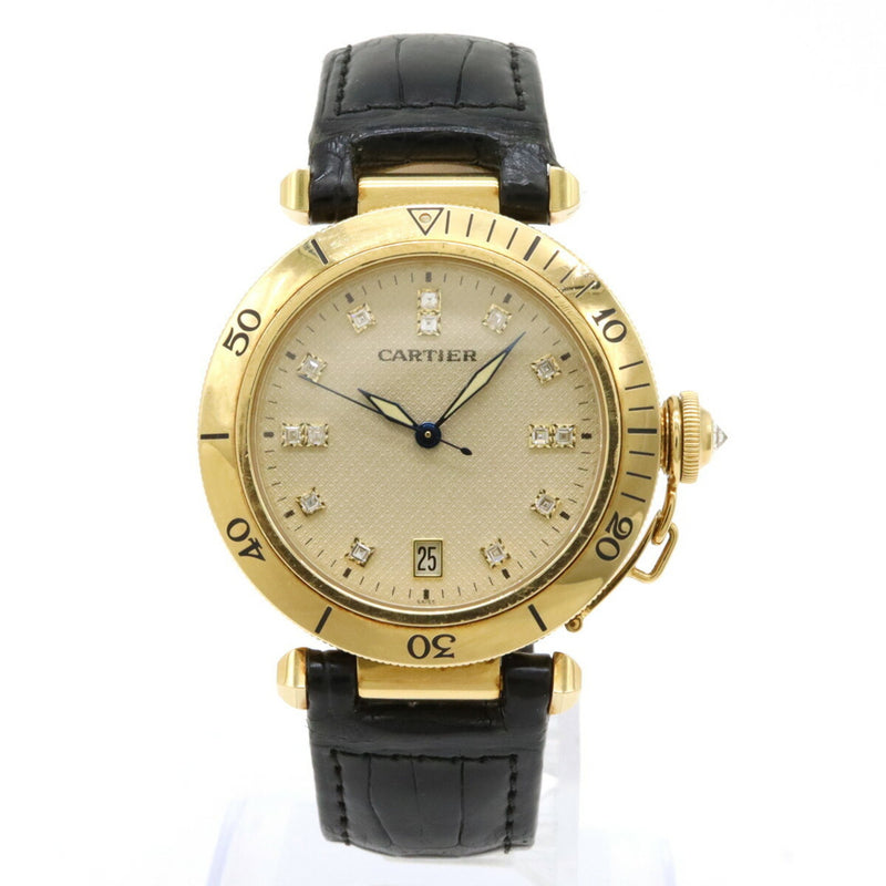 Montre automatique pour homme Cartier Pasha d'occasion, cadran guilloché ivoire, or jaune 18 carats et diamants, modèle AT W3010451