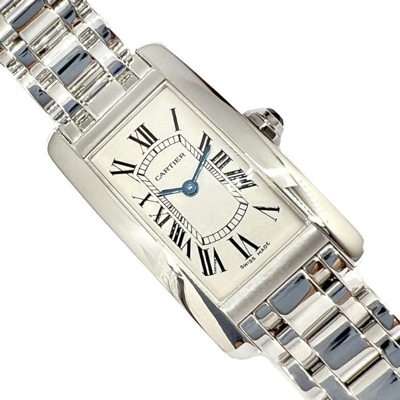 Montre-bracelet à quartz rectangulaire Cartier Tank Americaine SM W260119L1 K18WG d'occasion, cadran blanc, à piles, chiffres romains, pour femme