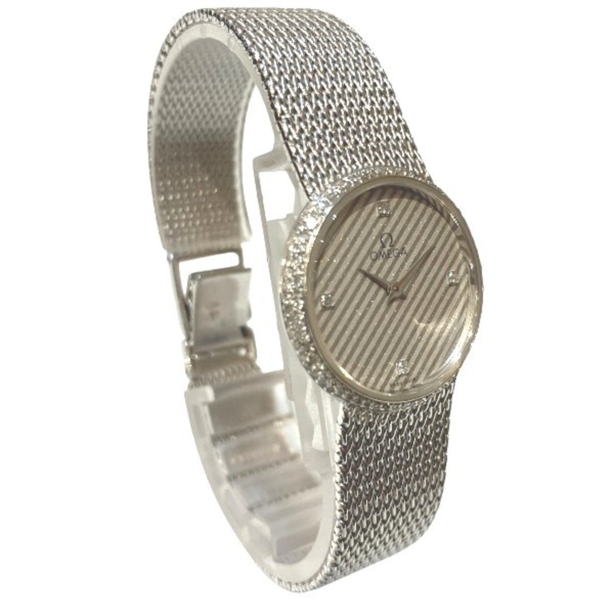 Pre-Owned Omega Quartz Cal. 1365 Push Crown 18K White Gold 4 Diamond Bezel Watch Women's