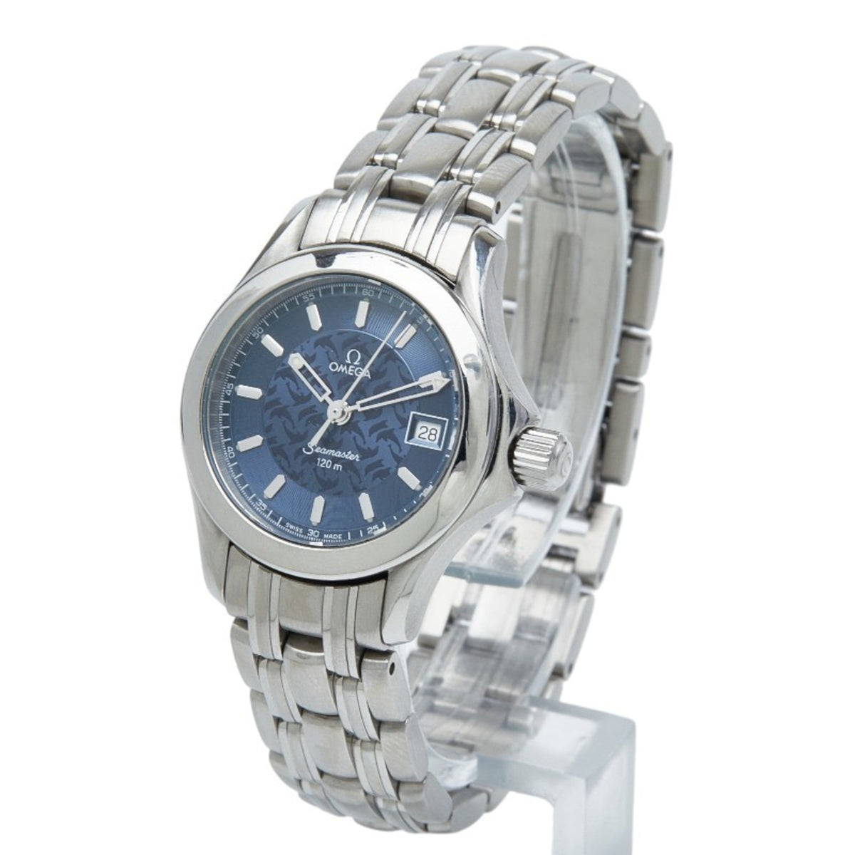 Pre-Owned OMEGA Seamaster 120 Jacques Mayol Limited Edition of 2000 Quartz Watch with Navy Dial and Stainless Steel, Women's
