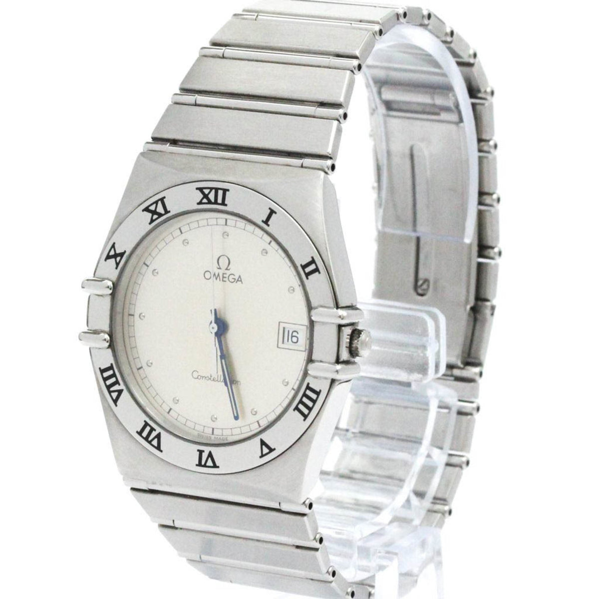 Montre Omega Constellation à quartz en acier inoxydable poli d'occasion pour homme 396.1070 BF581278