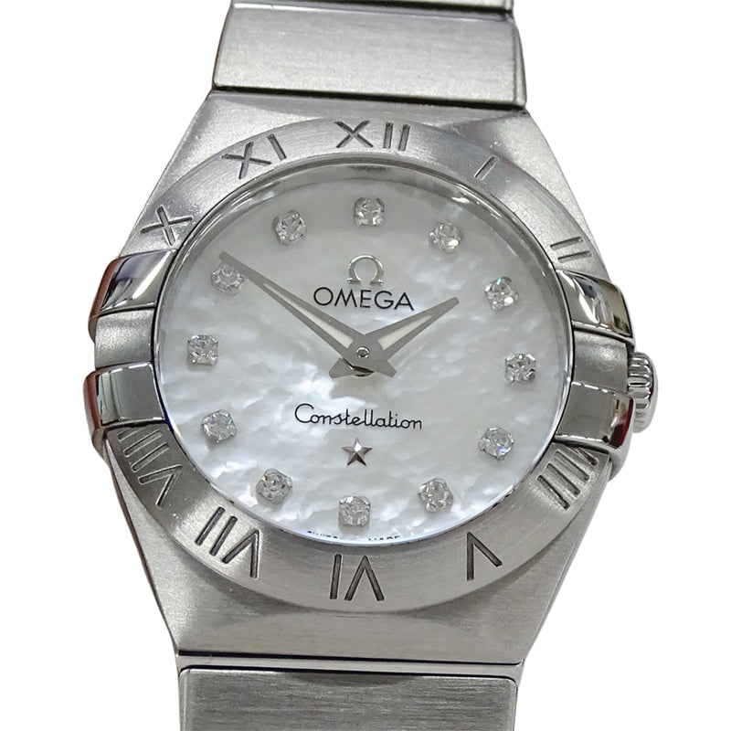 Pre-Owned OMEGA Constellation Brushed 123.10.24.60.55.001 Women's Watch with 12 Diamonds, Shell, Quartz Movement, Stainless Steel, Silver Polished