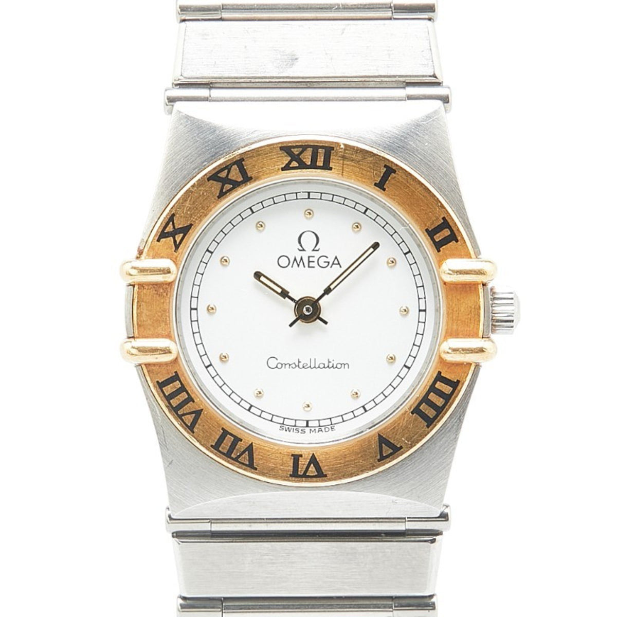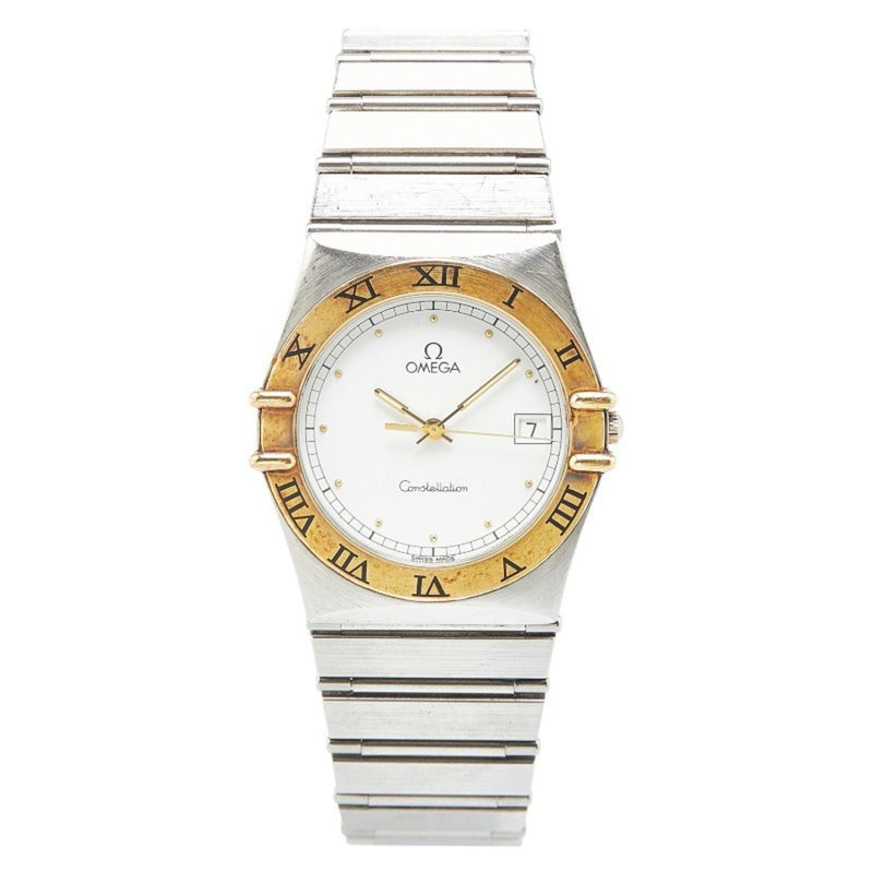 Montre Omega Constellation d'occasion à quartz, cadran blanc, acier inoxydable plaqué, pour homme