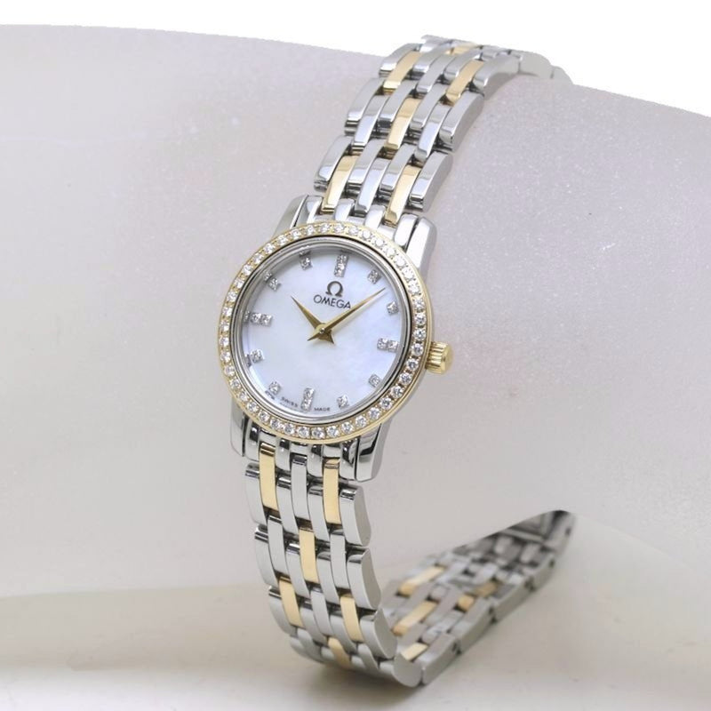 Montre femme Omega De Ville Prestige 4375.95.00 d'occasion, lunette diamantée, index, or jaune 18YG et acier inoxydable, 39861
