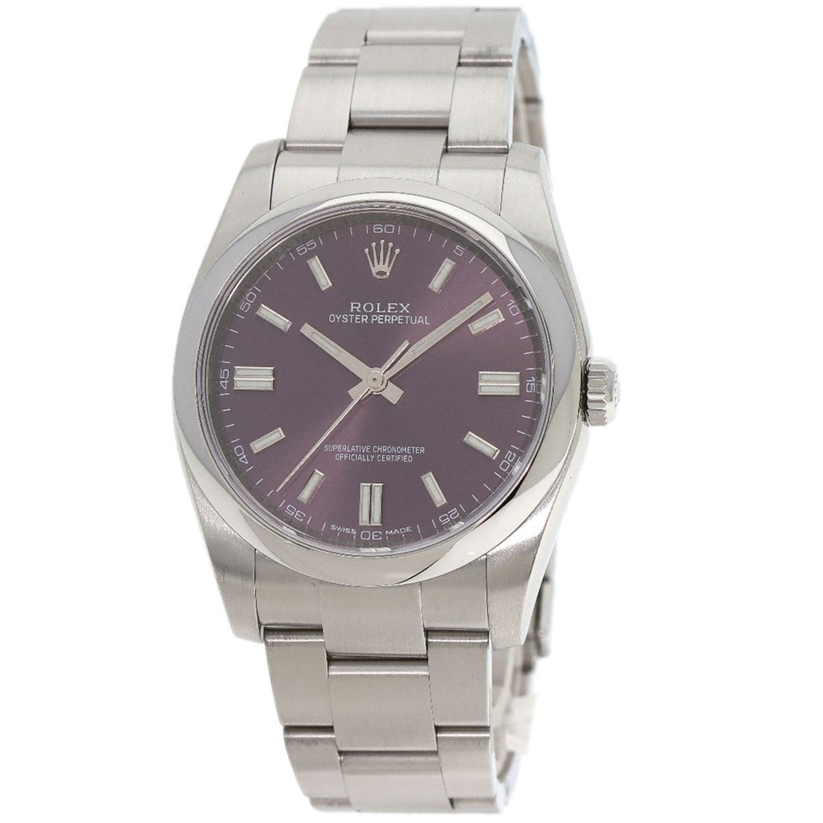Montre Rolex Oyster Perpetual 36 Red Grape d'occasion en acier inoxydable pour homme, modèle 116000