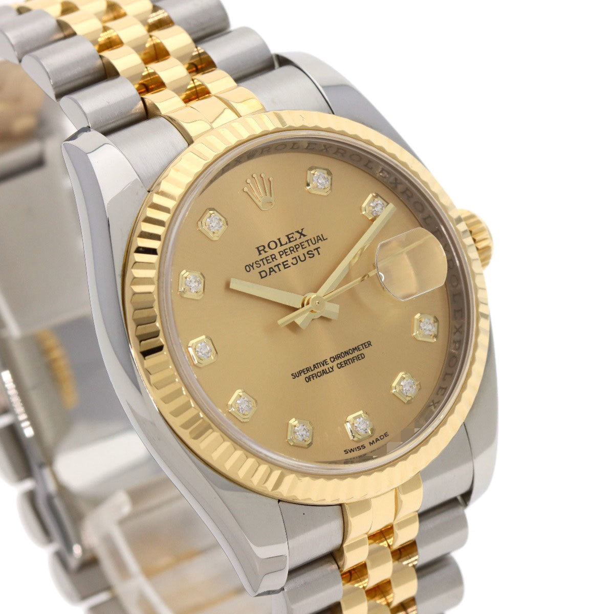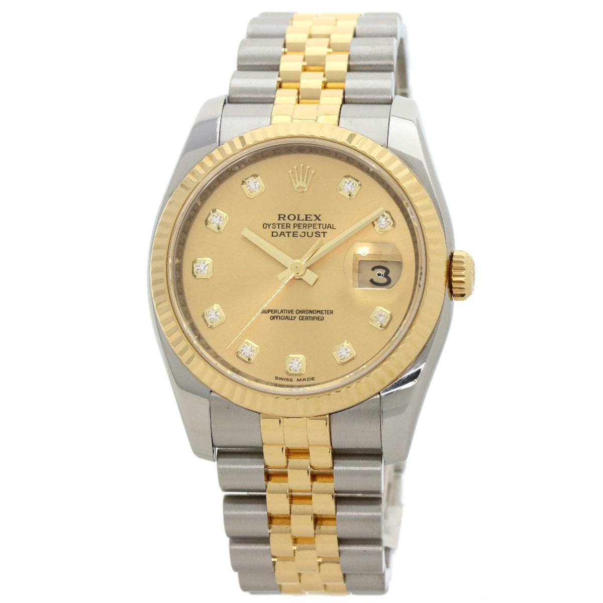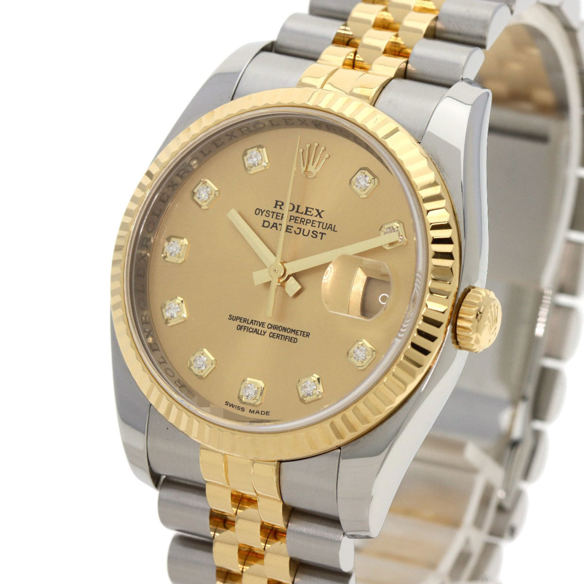 Montre Rolex Datejust 10P d'occasion en acier inoxydable SSxK18YG pour homme, modèle 116233G, avec diamants