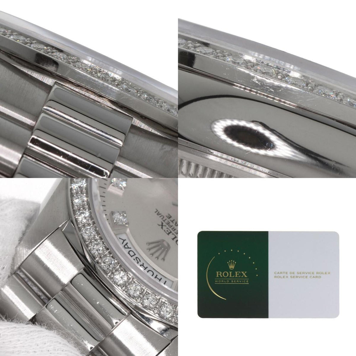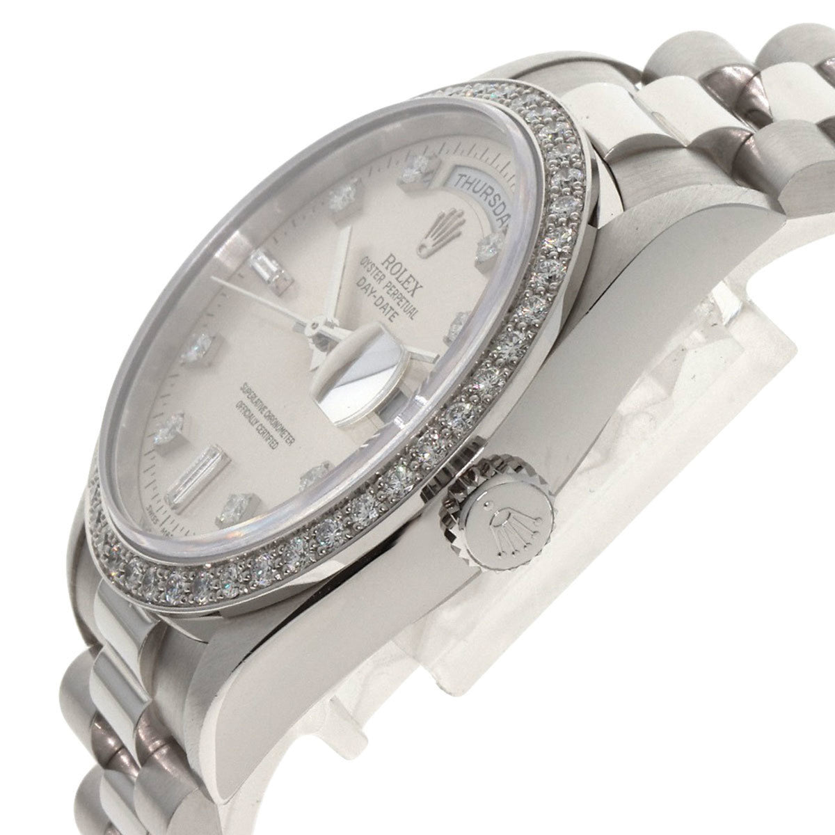 Montre Rolex Day Date 10P Diamond d'occasion, modèle 18346A, platine, PT, pour homme