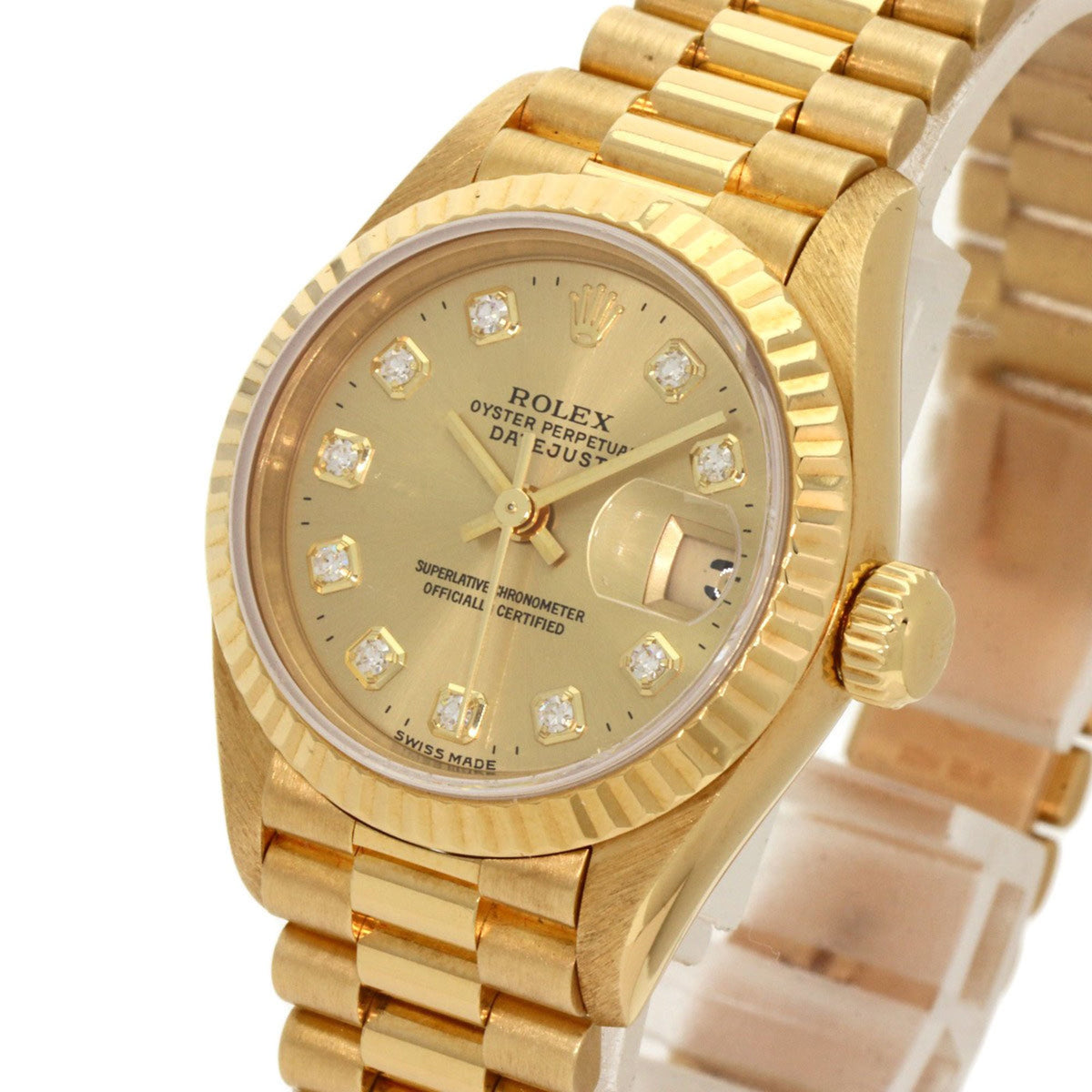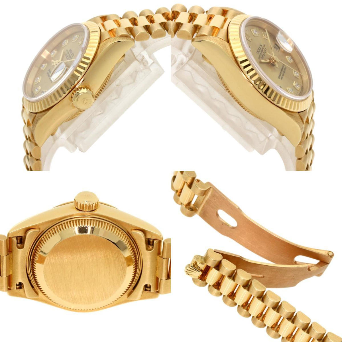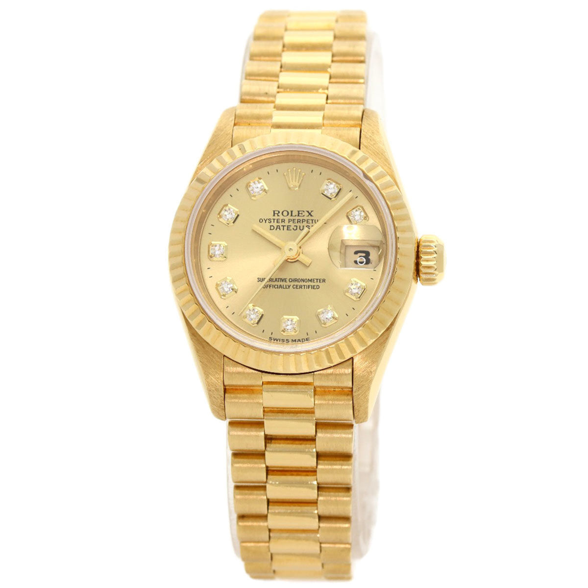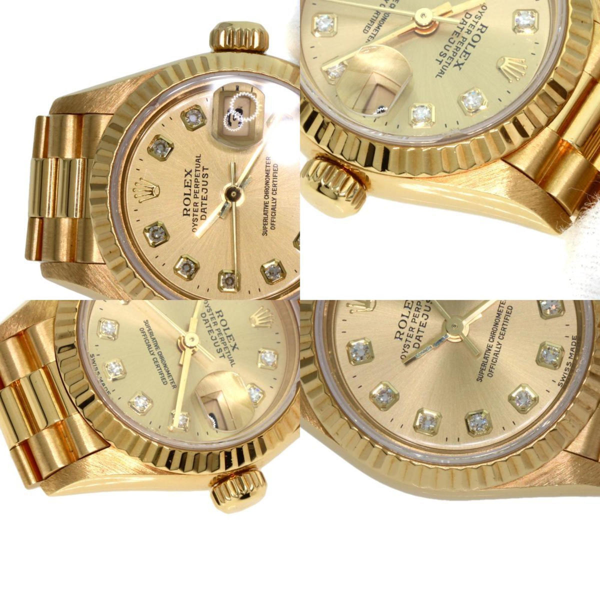 Montre Rolex Datejust 10P d'occasion en or jaune K18 pour femme, modèle 69178G, sertie de diamants
