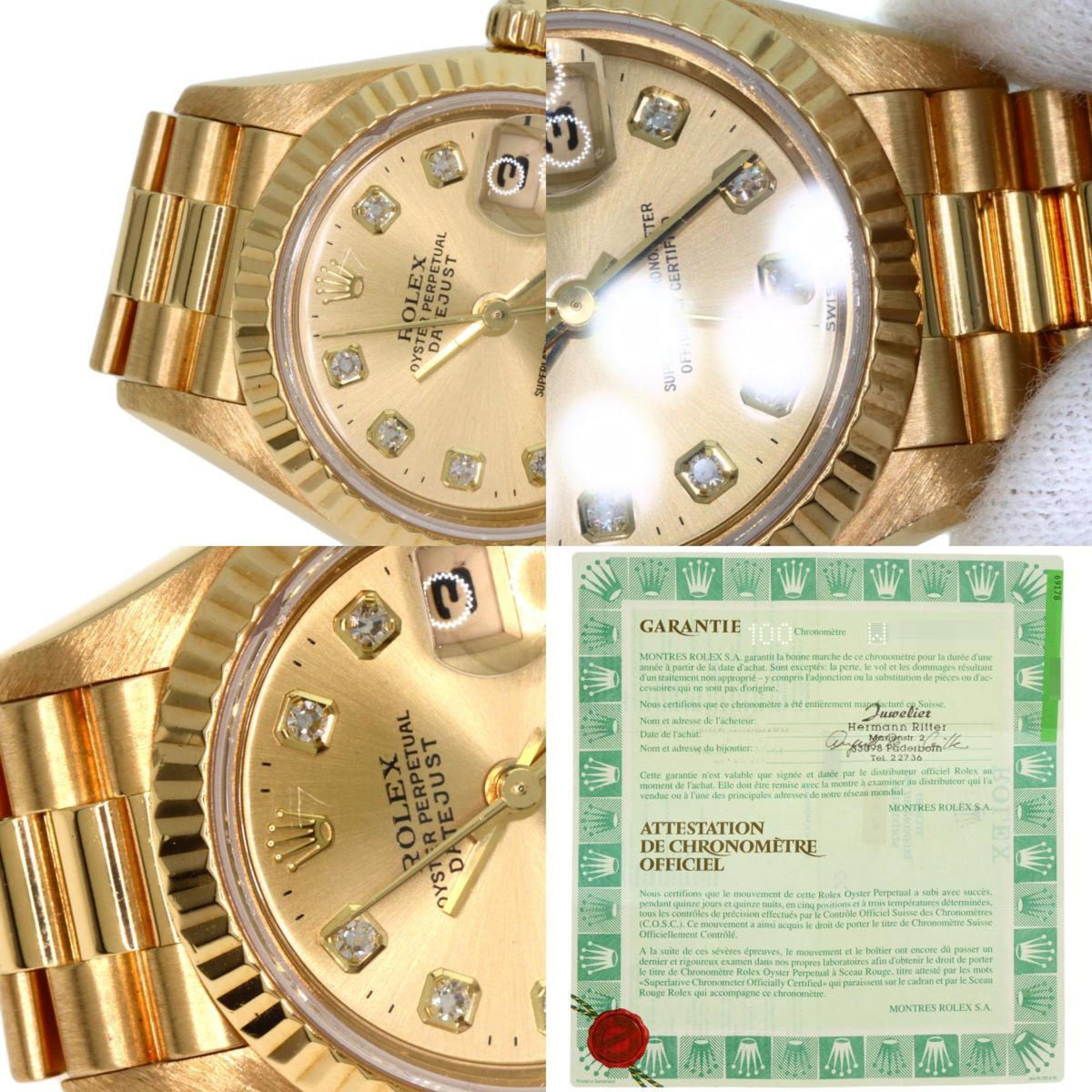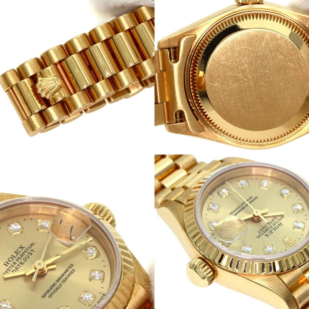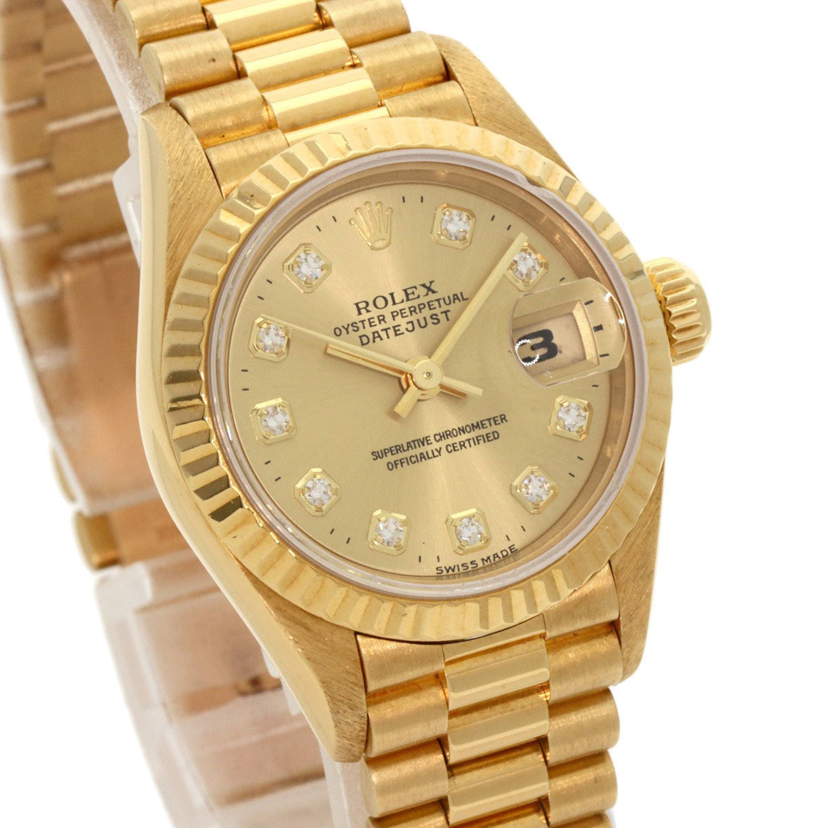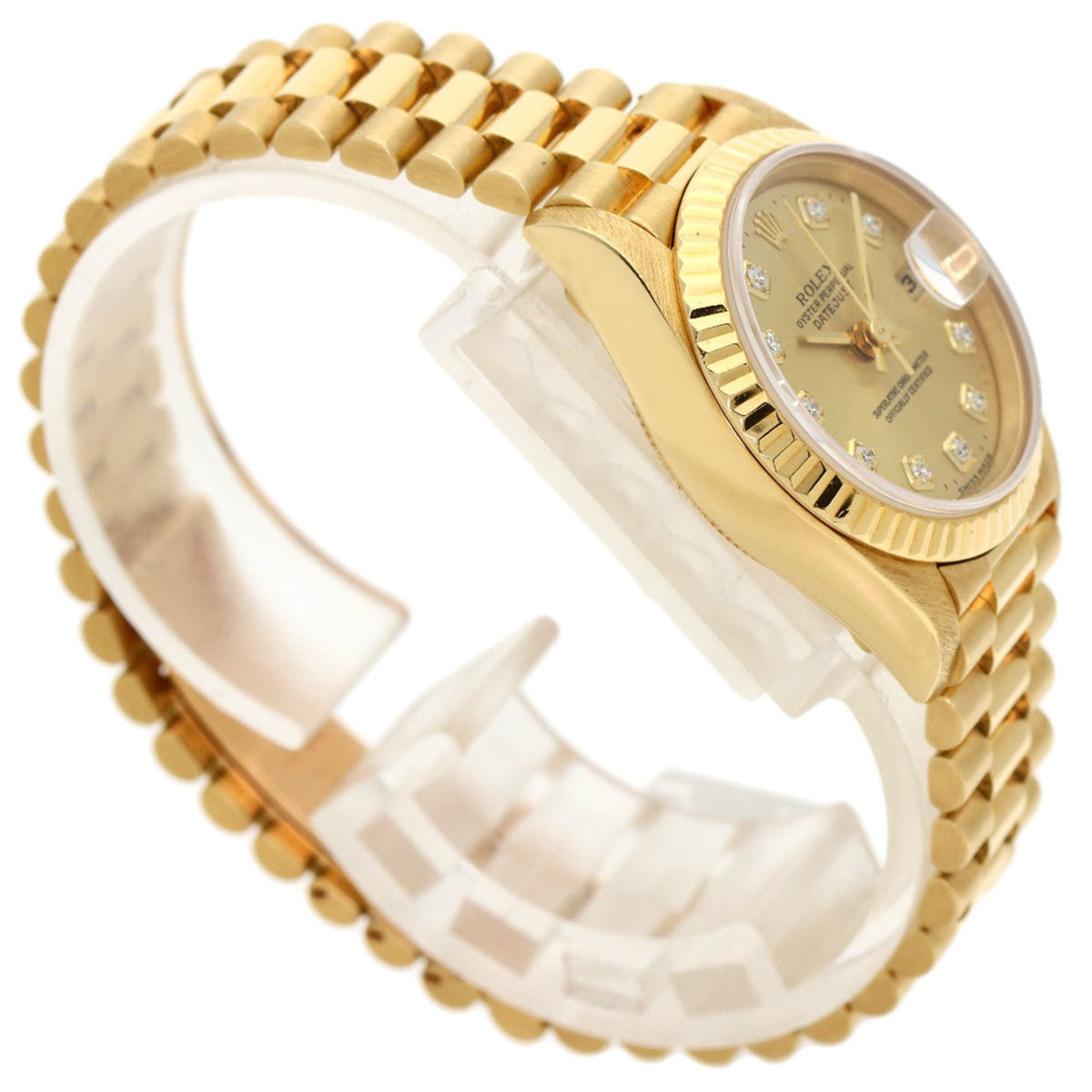 Montre Rolex Datejust 10P d'occasion en or jaune K18 pour femme, modèle 69178G, sertie de diamants