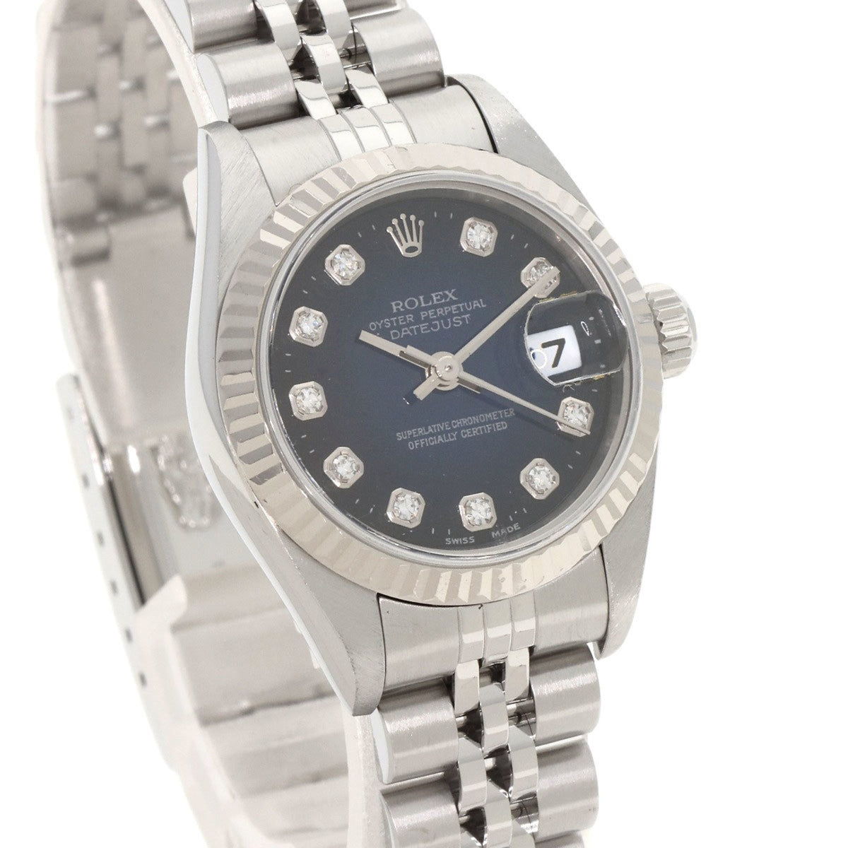 Montre Rolex Datejust 10P d'occasion en acier inoxydable SS K18WG pour femme.