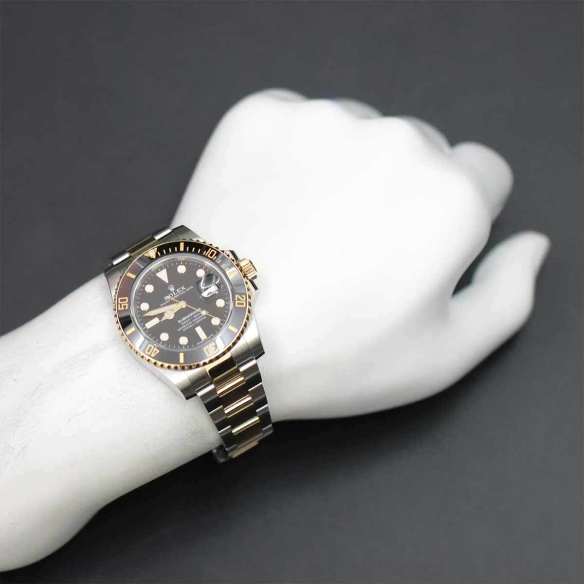 Montre Rolex Submariner Date Combi 116613LN d'occasion pour homme, avec numéro aléatoire, noire, or jaune, remontage automatique