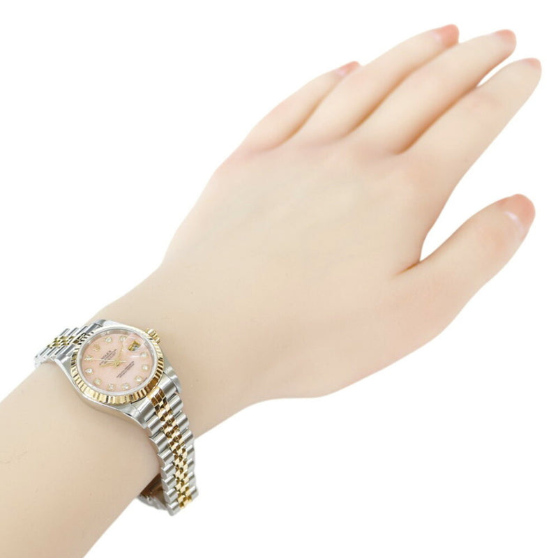 Montre Rolex Datejust 28 10P d'occasion en acier inoxydable SSxK18YG pour femme.