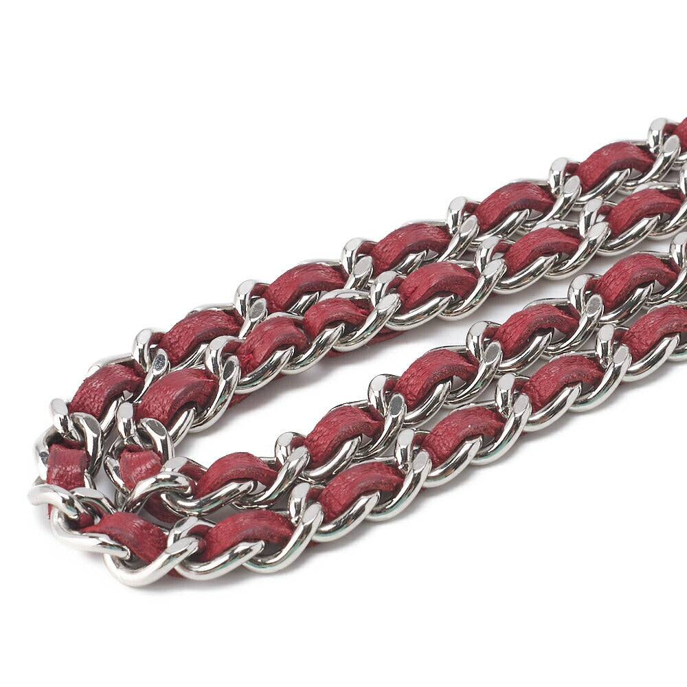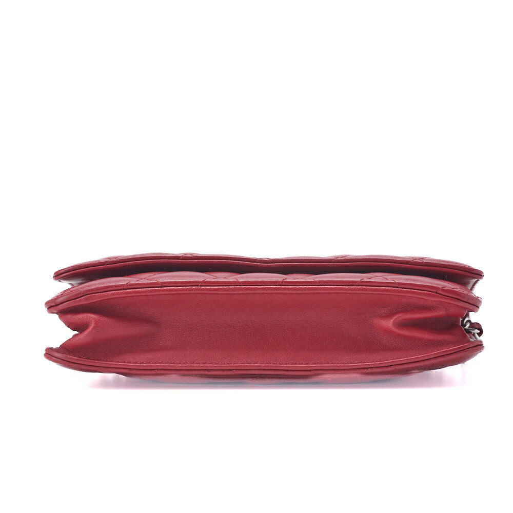Portefeuille à chaîne d'occasion en cuir d'agneau matelassé rouge et matériel argenté.