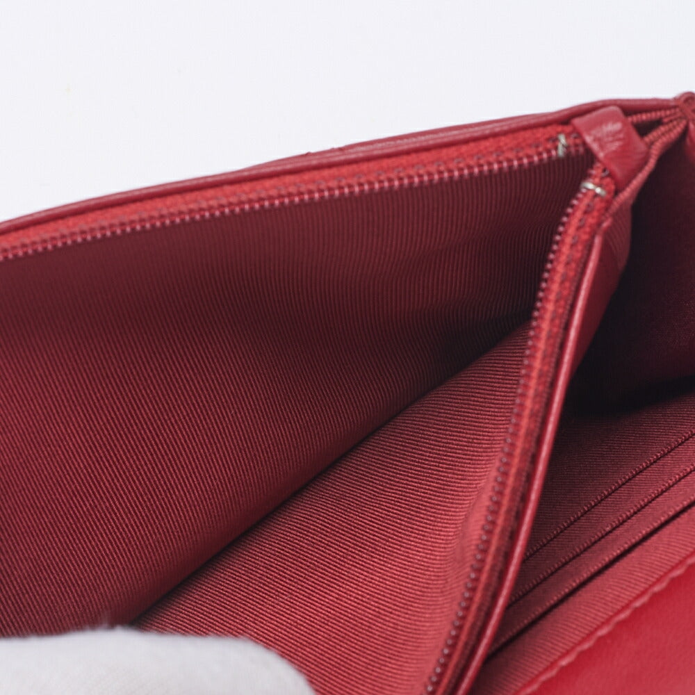 Sublimez votre collection d'accessoires avec le portefeuille chaîne CHANEL Matelasse en cuir d'agneau luxueux, décliné dans une teinte rouge éclatante et orné d'élégantes finitions argentées. Ce portefeuille pliable intemporel pour femme est non seulement un accessoire de mode, mais aussi un compagnon pratique pour vos aventures quotidiennes.