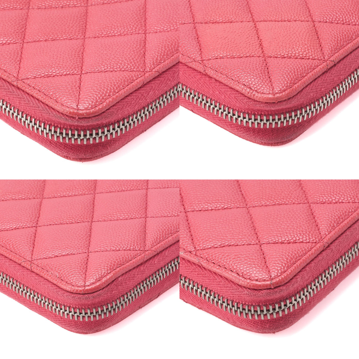 Portefeuille long d'occasion en cuir matelassé caviar rose et métal argenté.