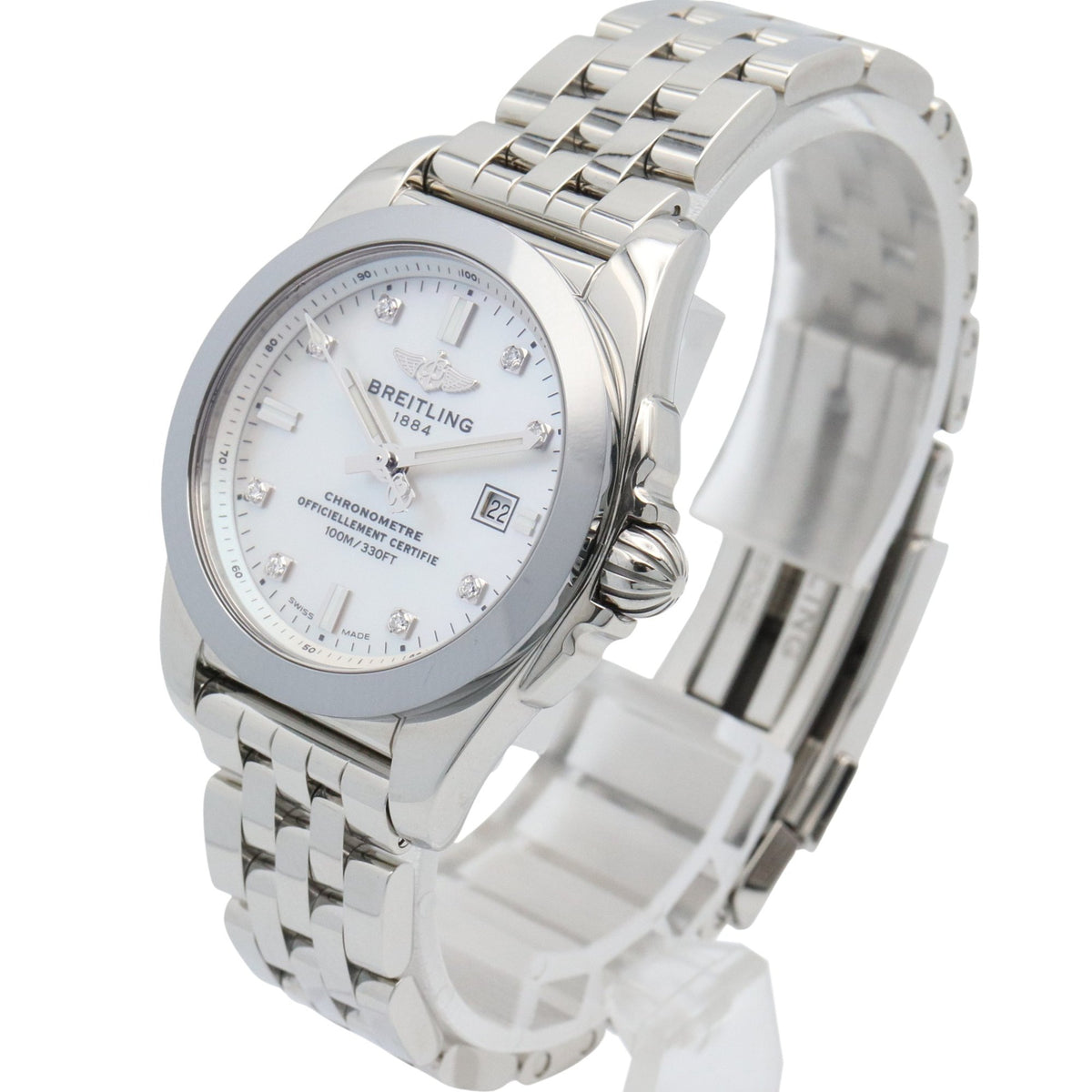 Pre-Owned Breitling Galactic 29 Stainless Steel Women's Watch with White Shell (W7234812)