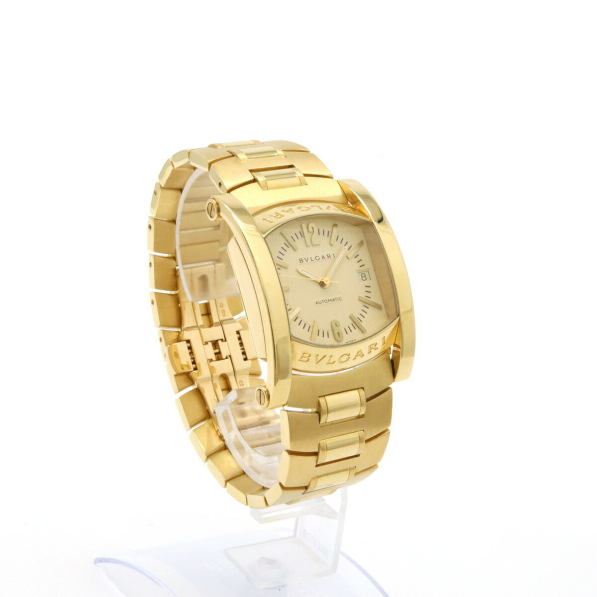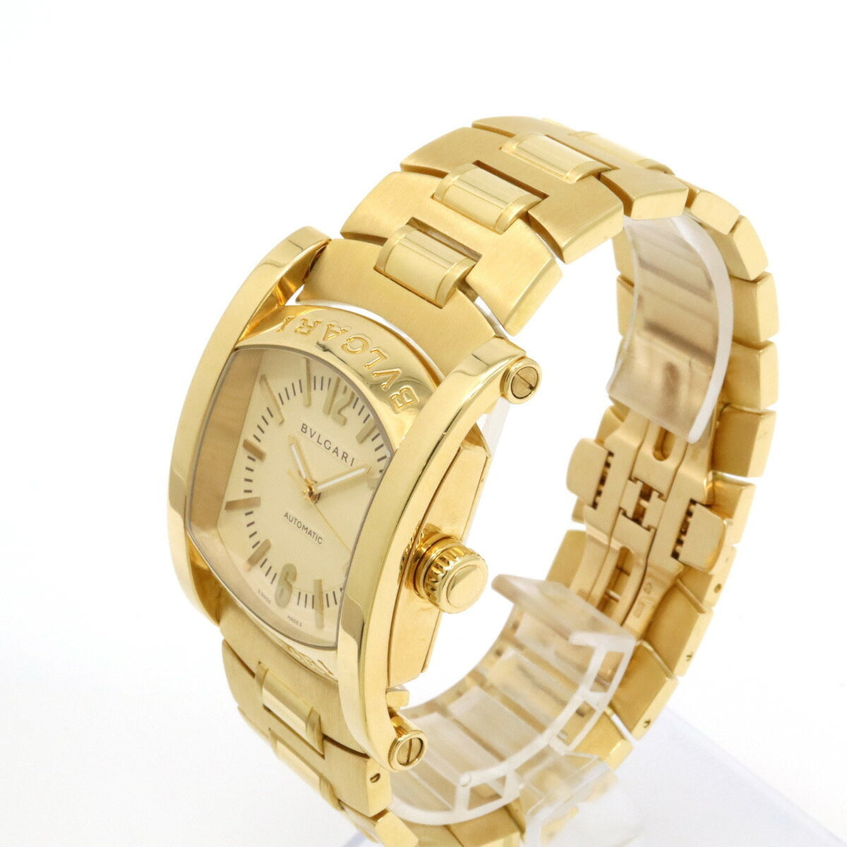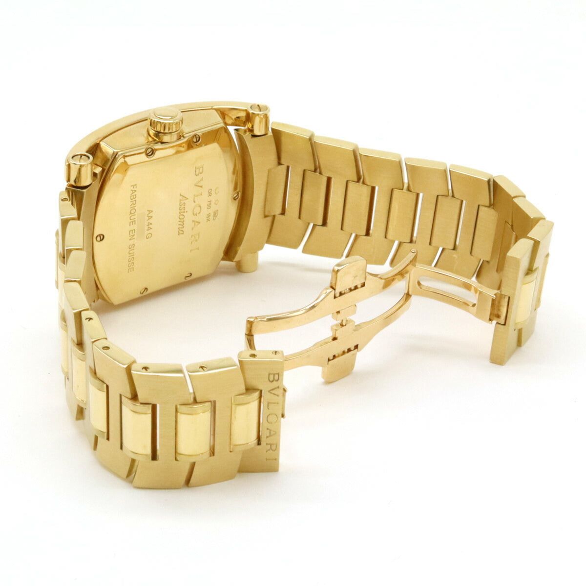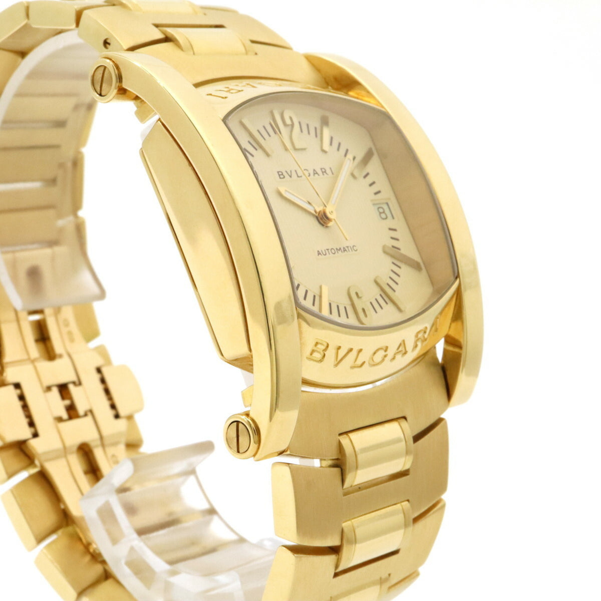 Montre-bracelet automatique BVLGARI Ashoma Date d'occasion pour homme, cadran ivoire, bracelet en cuir, modèle K18YG, modèle A4G
