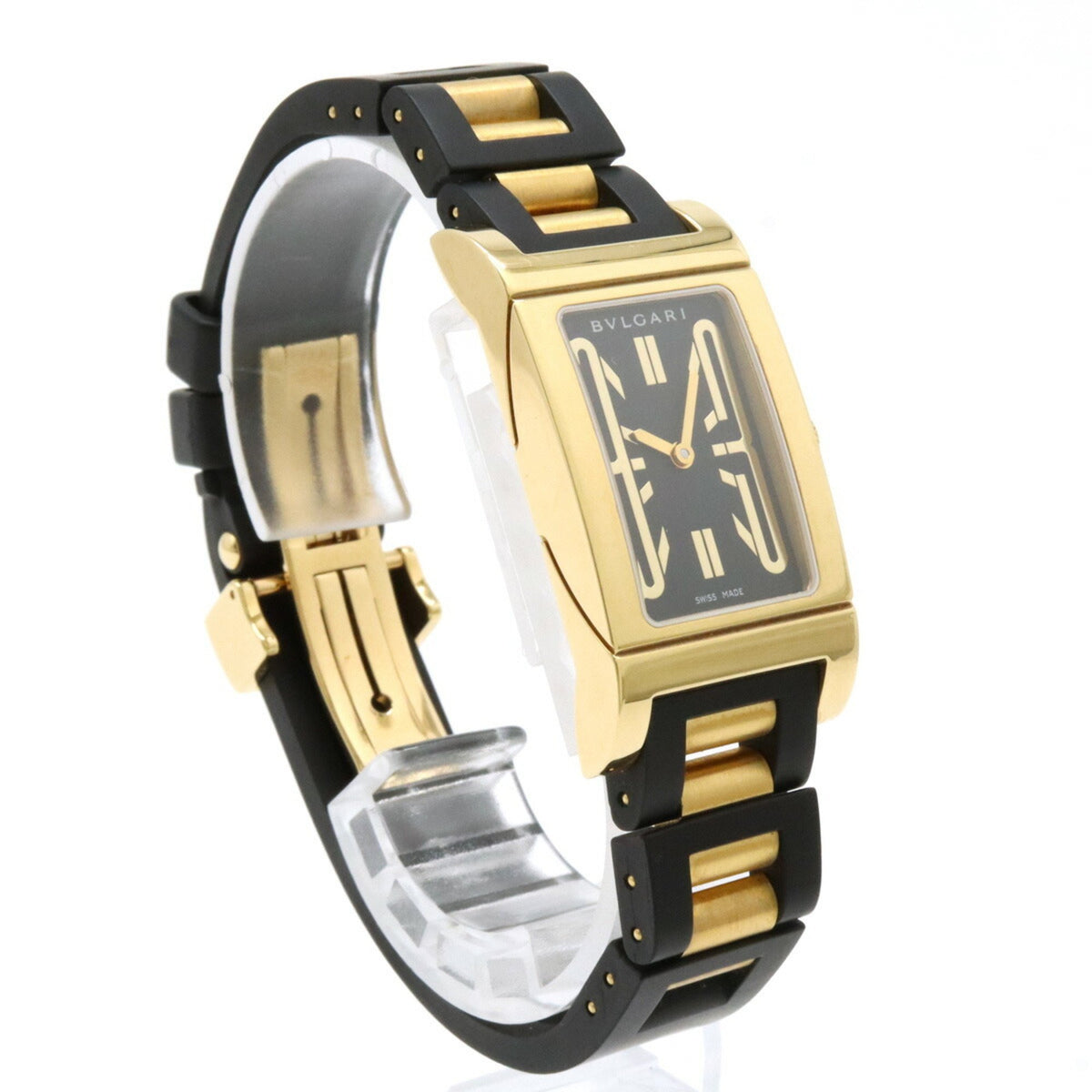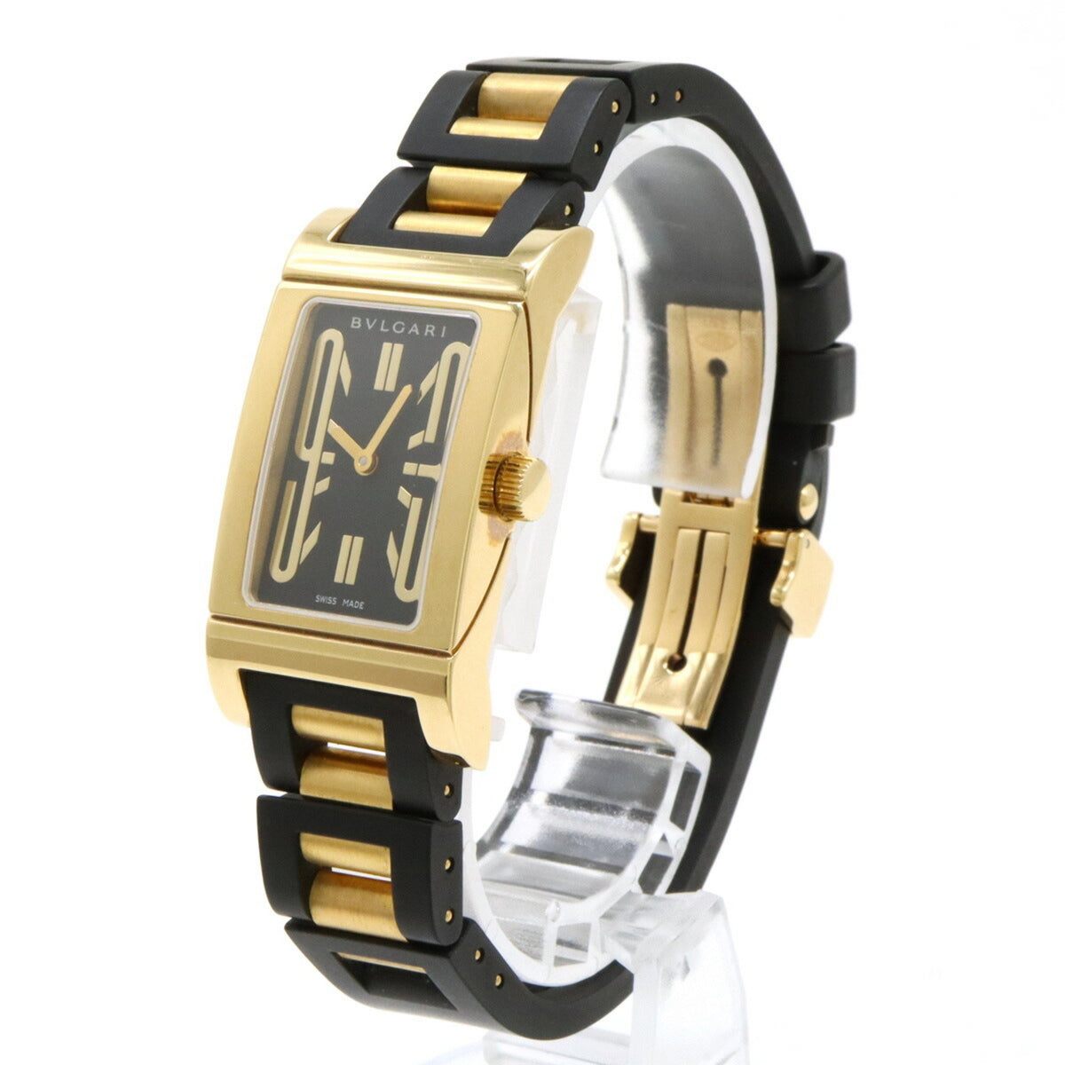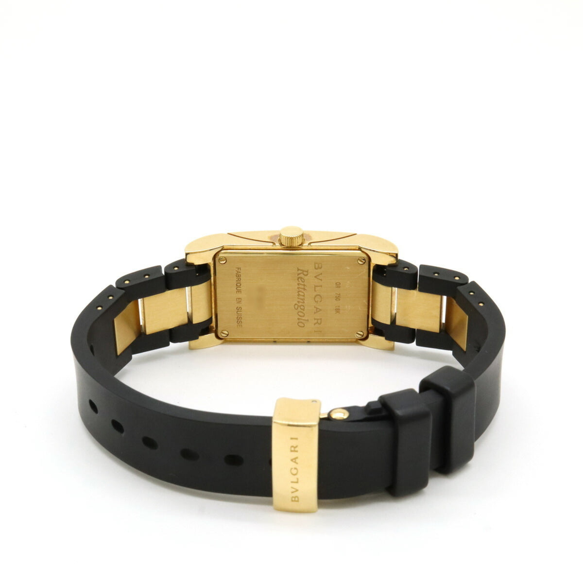 Montre femme BVLGARI Rettangolo d'occasion, cadran noir, bracelet en caoutchouc 750YG, quartz RT39G