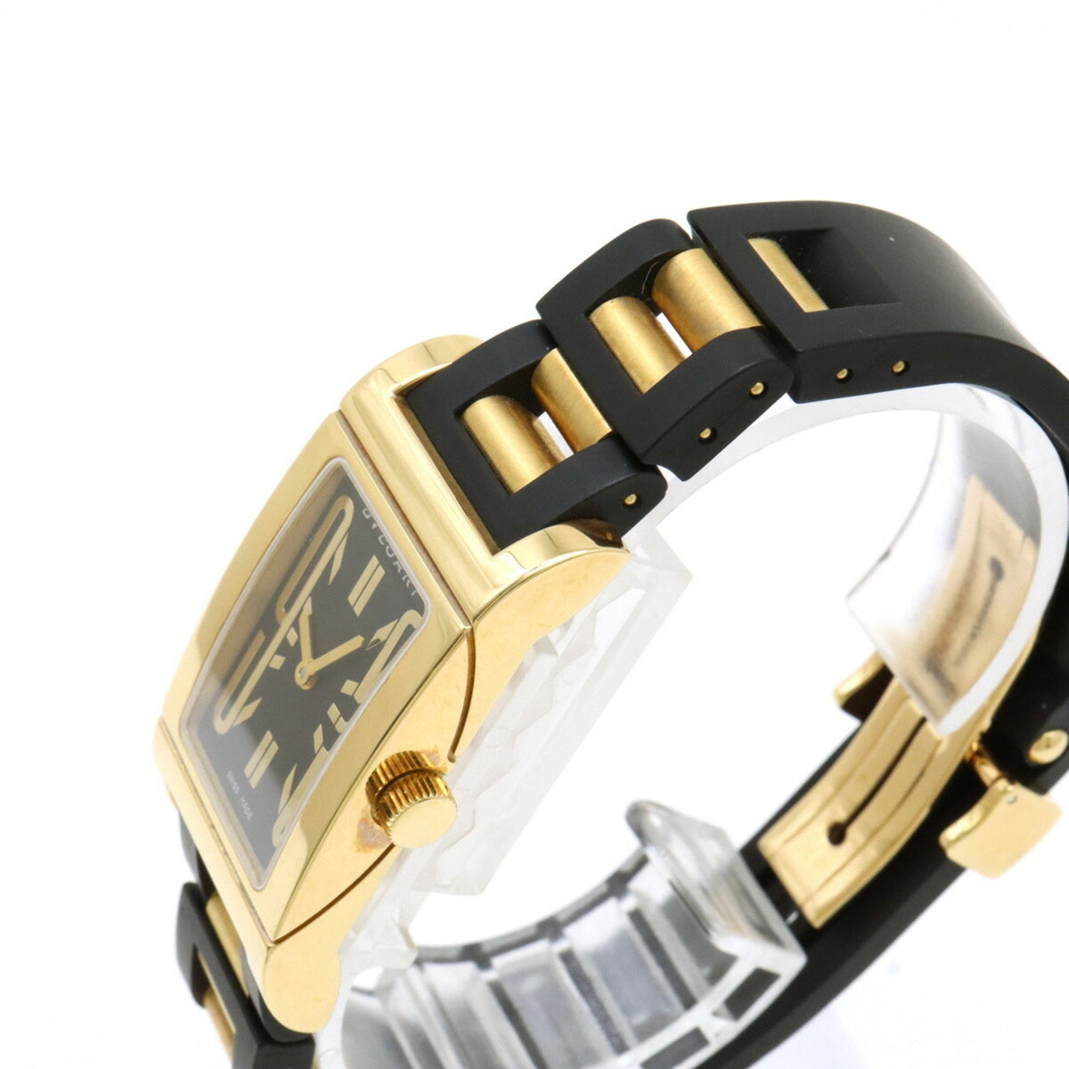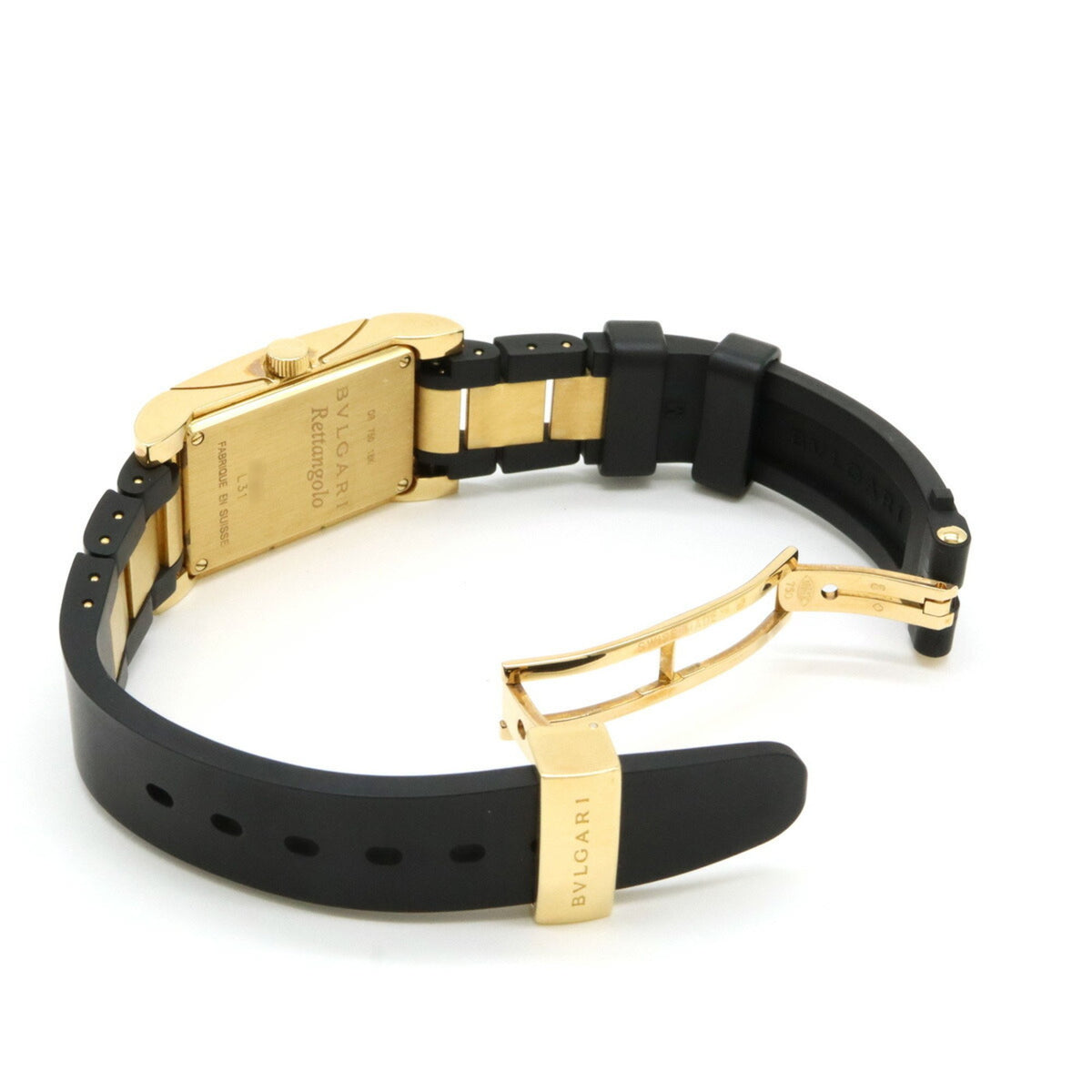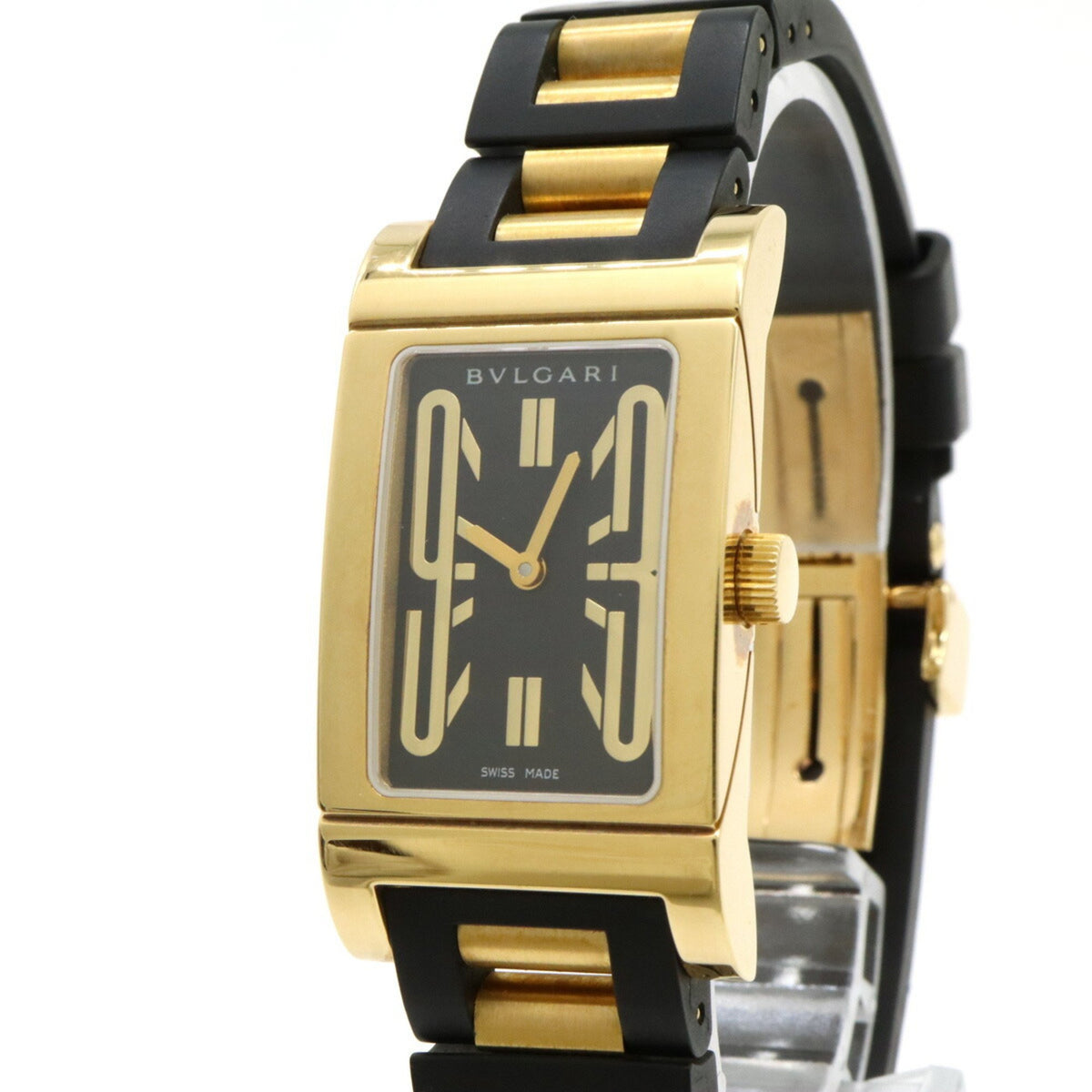 Montre femme BVLGARI Rettangolo d'occasion, cadran noir, bracelet en caoutchouc 750YG, quartz RT39G