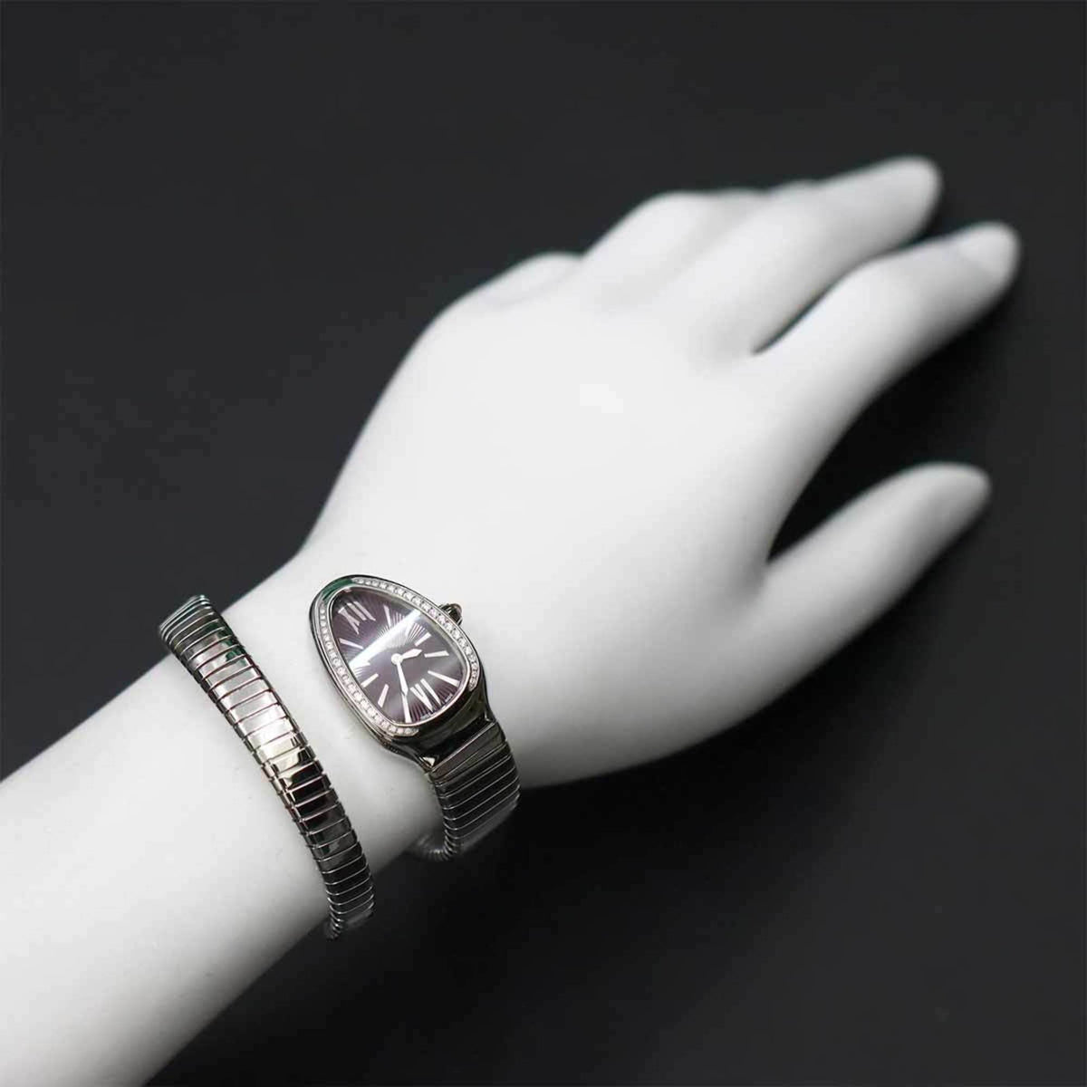 Montre BVLGARI Serpenti SP35S d'occasion pour femme, lunette diamantée, quartz violet