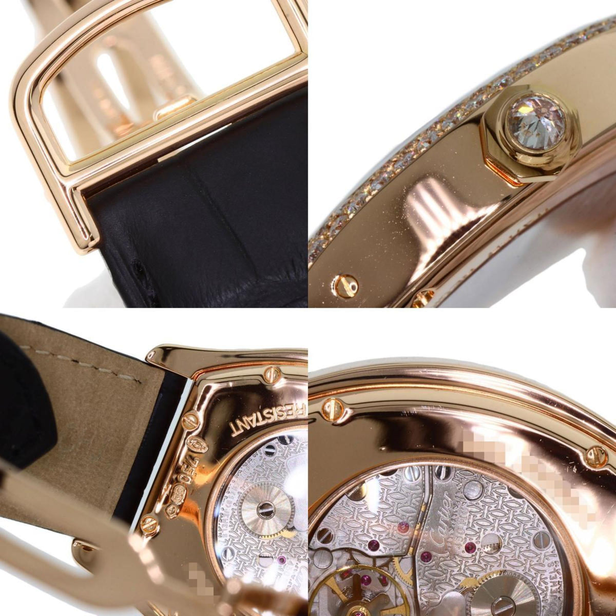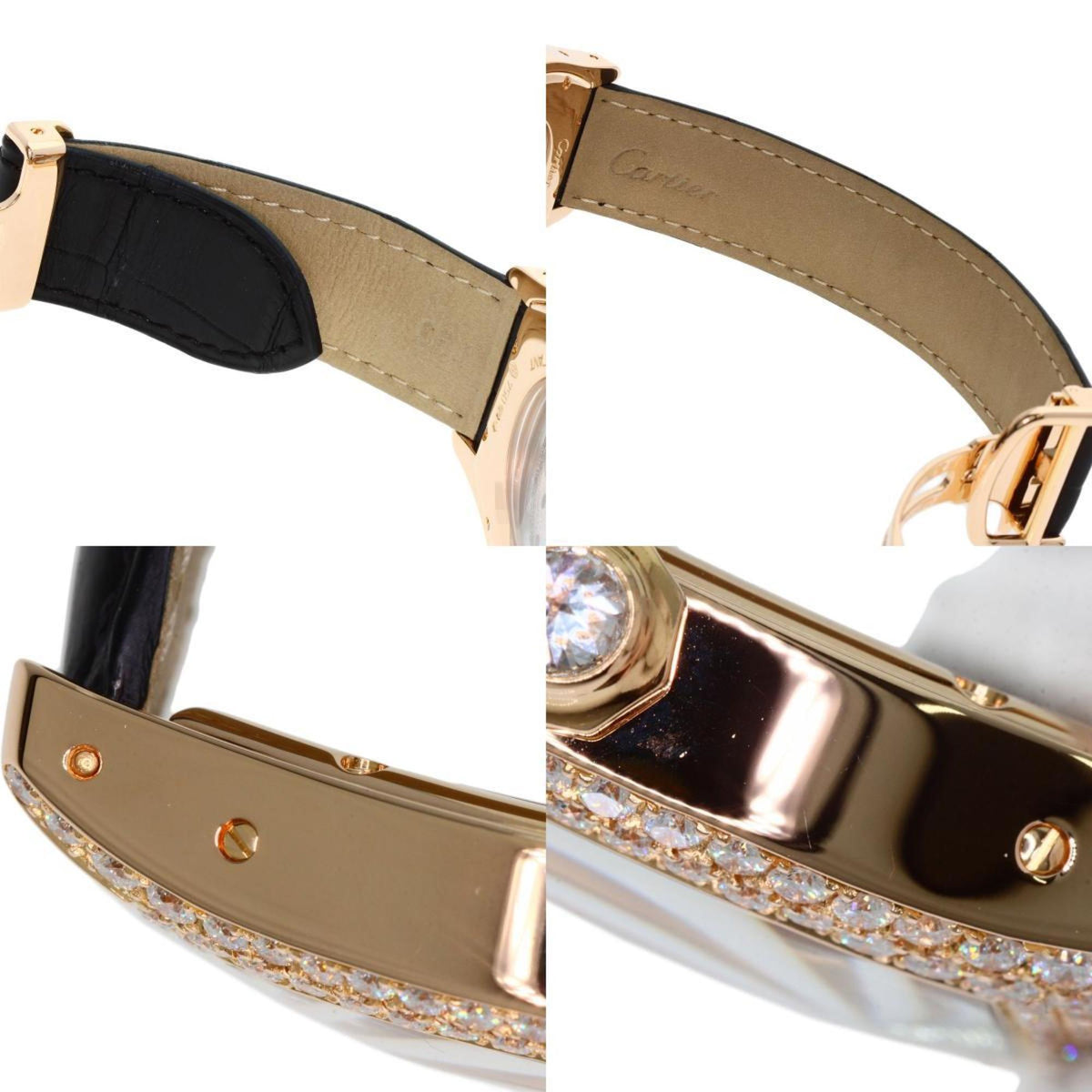 Pre-Owned Cartier WA503951 Tortue LM Diamond Watch, 18K Pink Gold/Leather/Diamond, Men's
